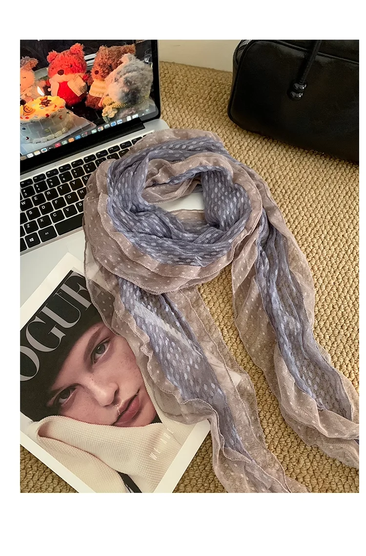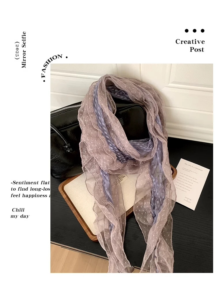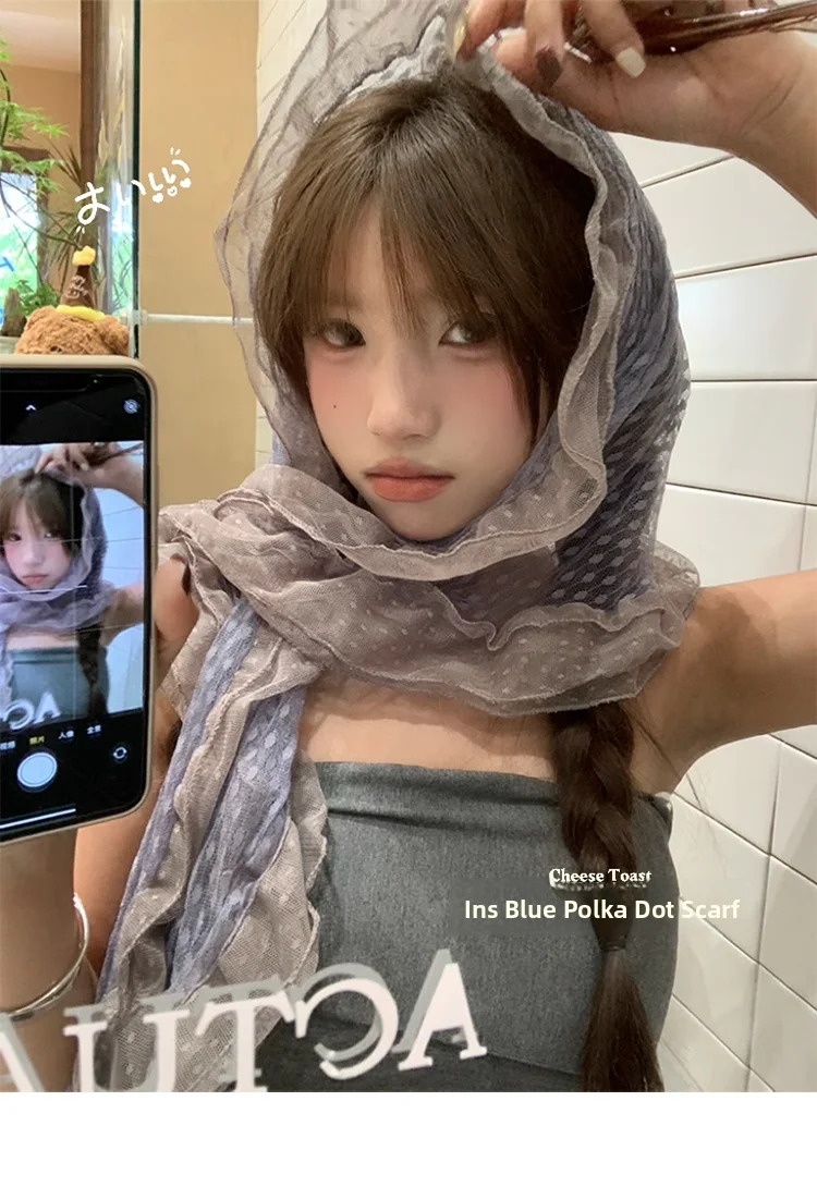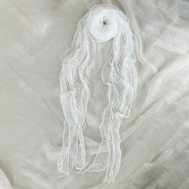 Ele ey Blue Polka Dot Lace Scarf Women Long Floa Bow Netie Autumn Winter Travel Outfit Accory Tgea Brand 2025 Fa...