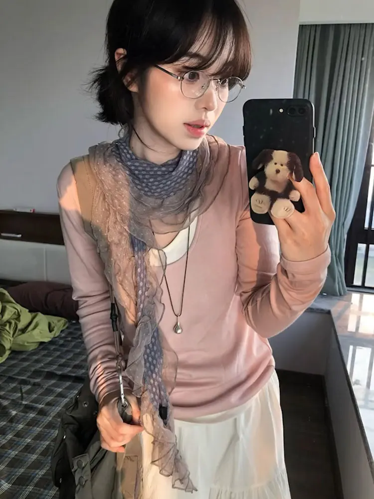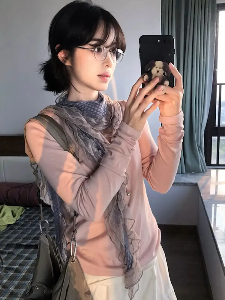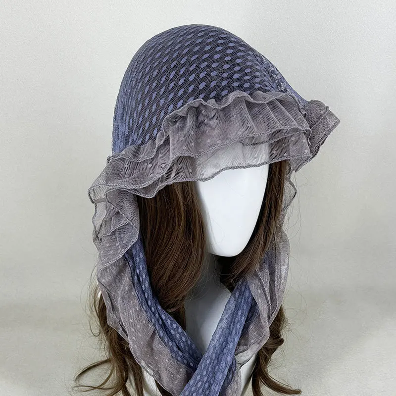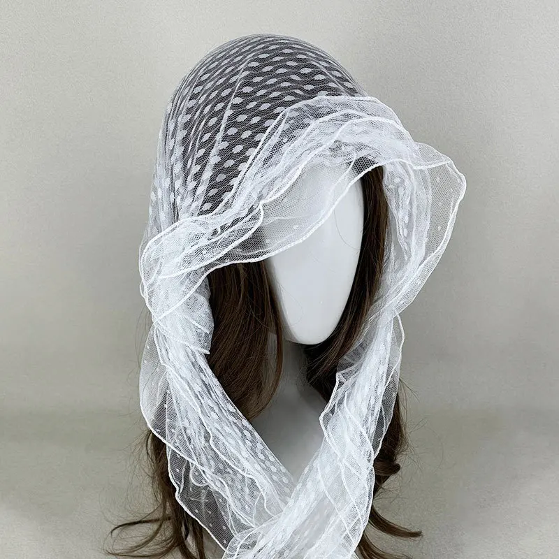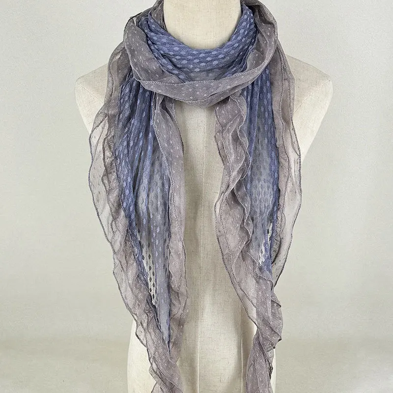 Ele ey Blue Polka Dot Lace Scarf Women Long Floa Bow Netie Autumn Winter Travel Outfit Accory Tgea Brand 2025 Fa...