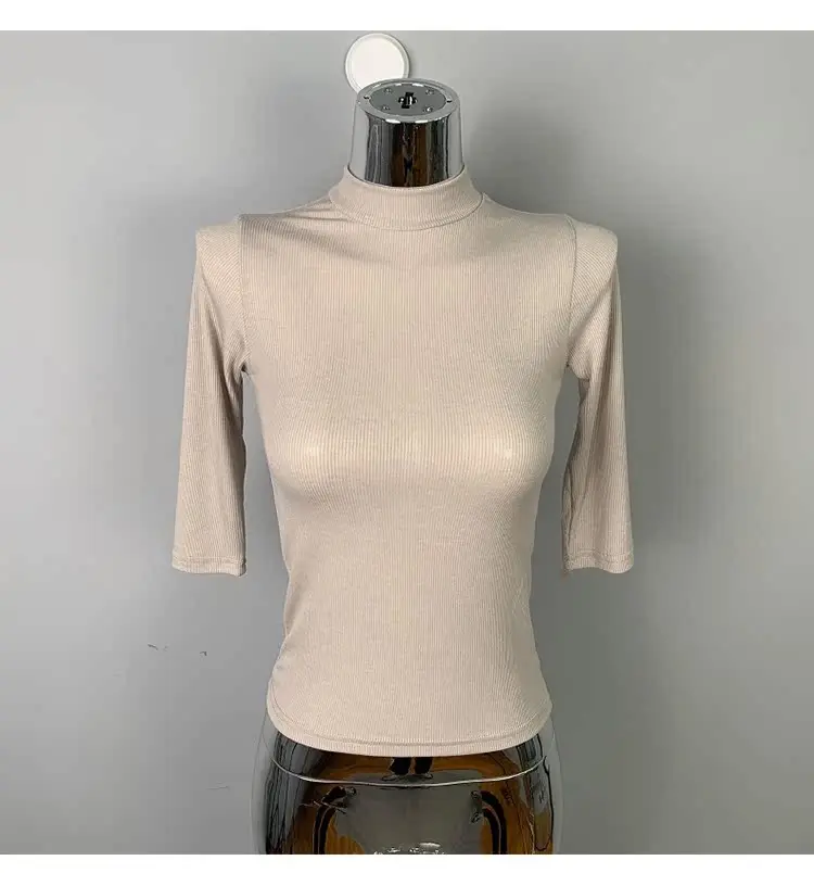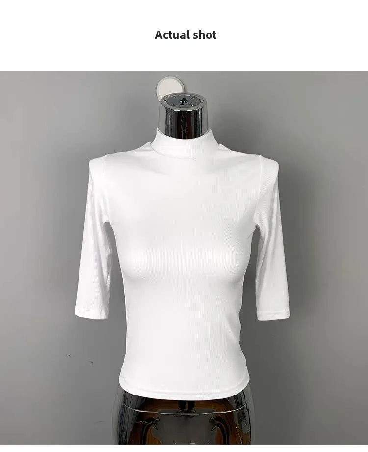 The half high collar adds a touch of elegance, elevating the overall aesthetic of the T-shirt.