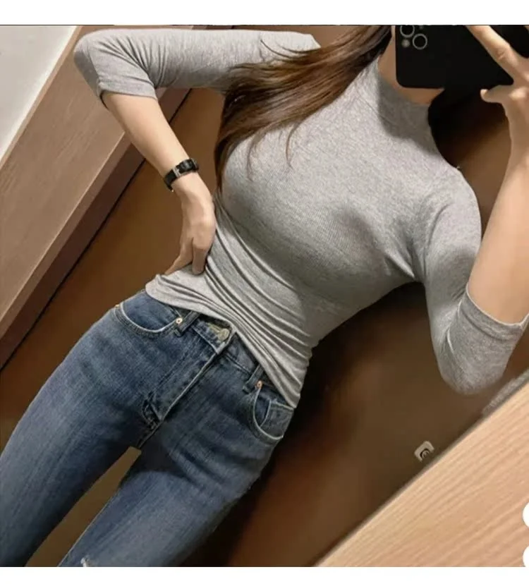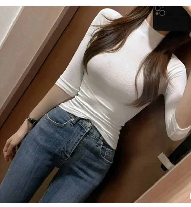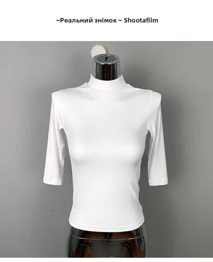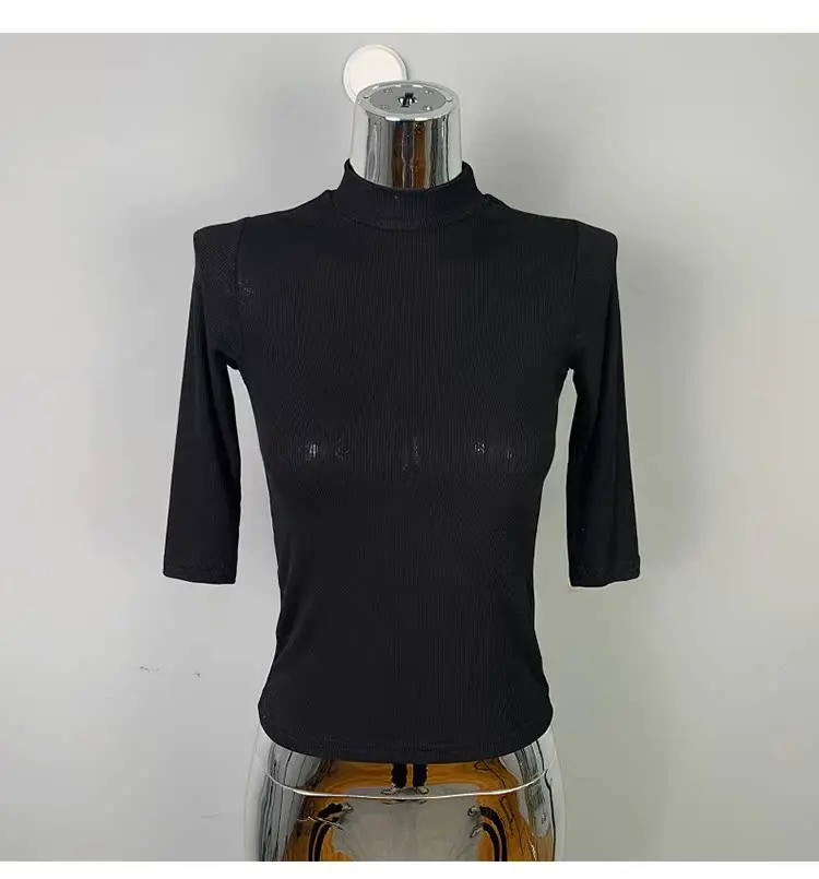 The half high collar adds a touch of elegance, elevating the overall aesthetic of the T-shirt.