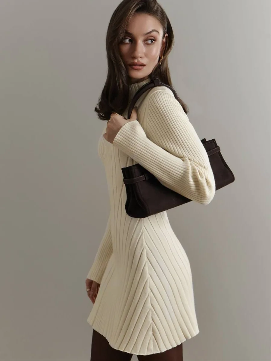 Crafted from high-quality knitted material, this dress offers comfort and durability.