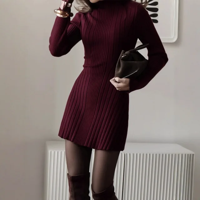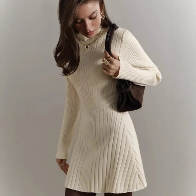 Crafted from high-quality knitted material, this dress offers comfort and durability.