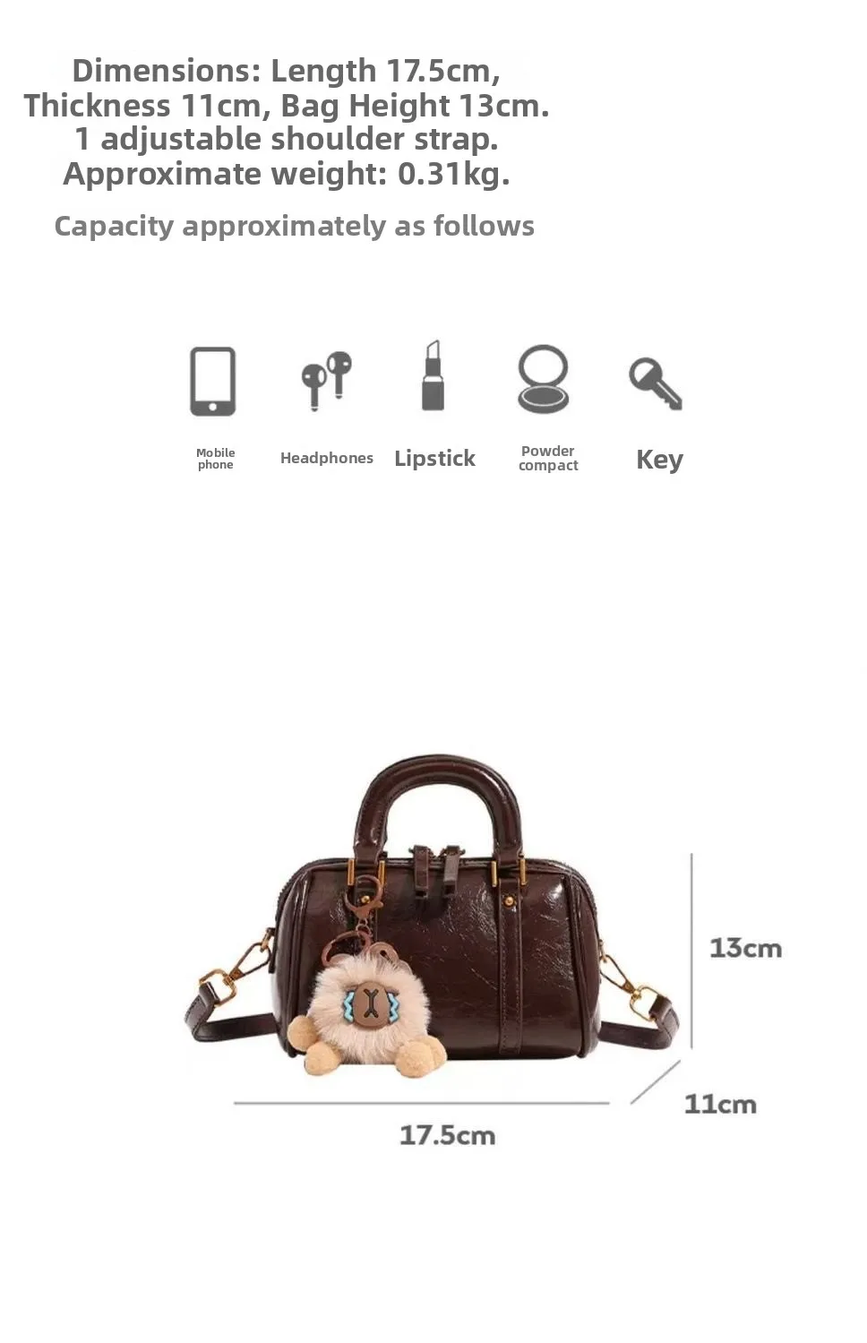 Crafted from high-quality PU leather, this bag offers durability and a luxurious feel, ensuring long-lasting use.