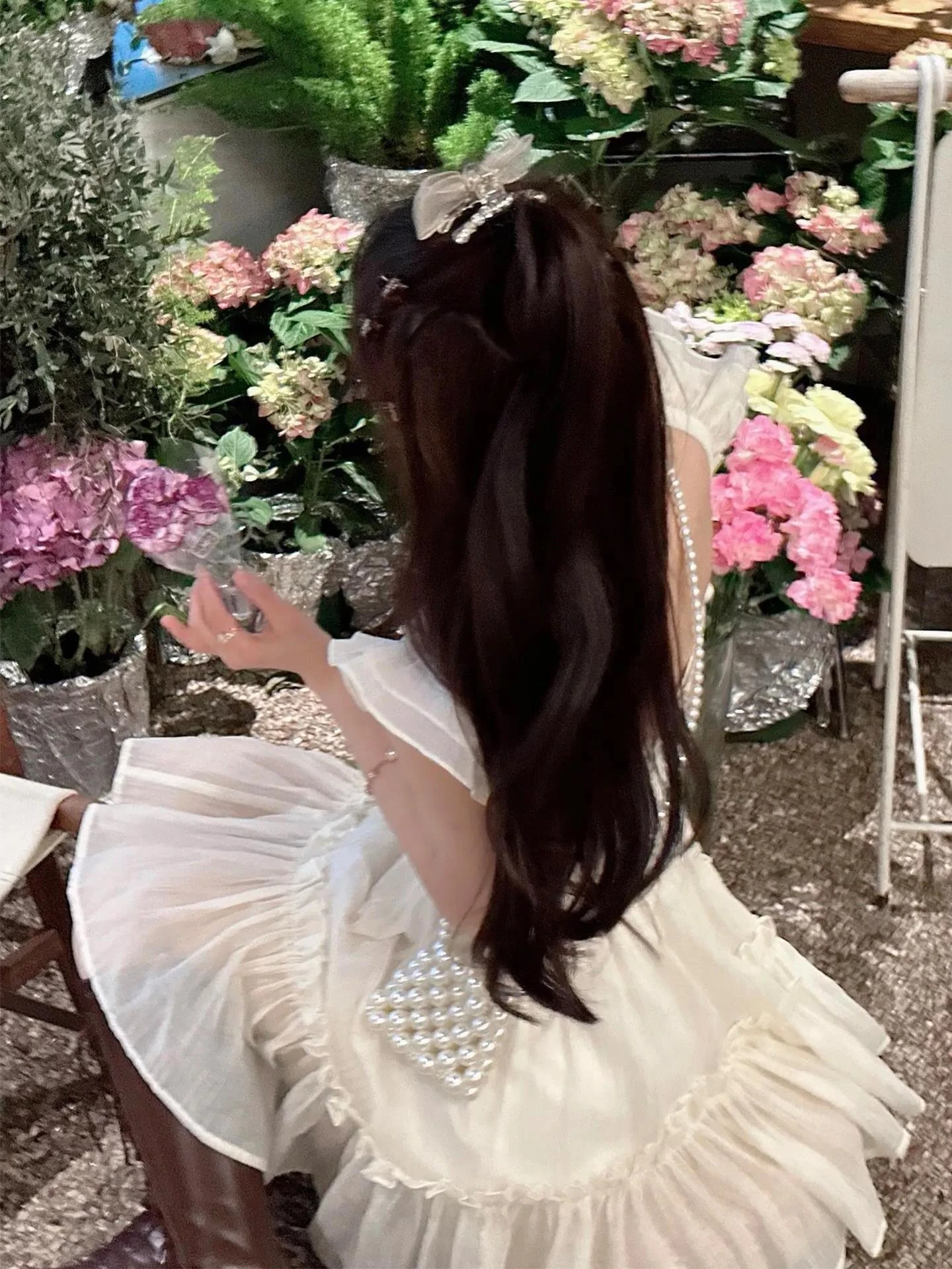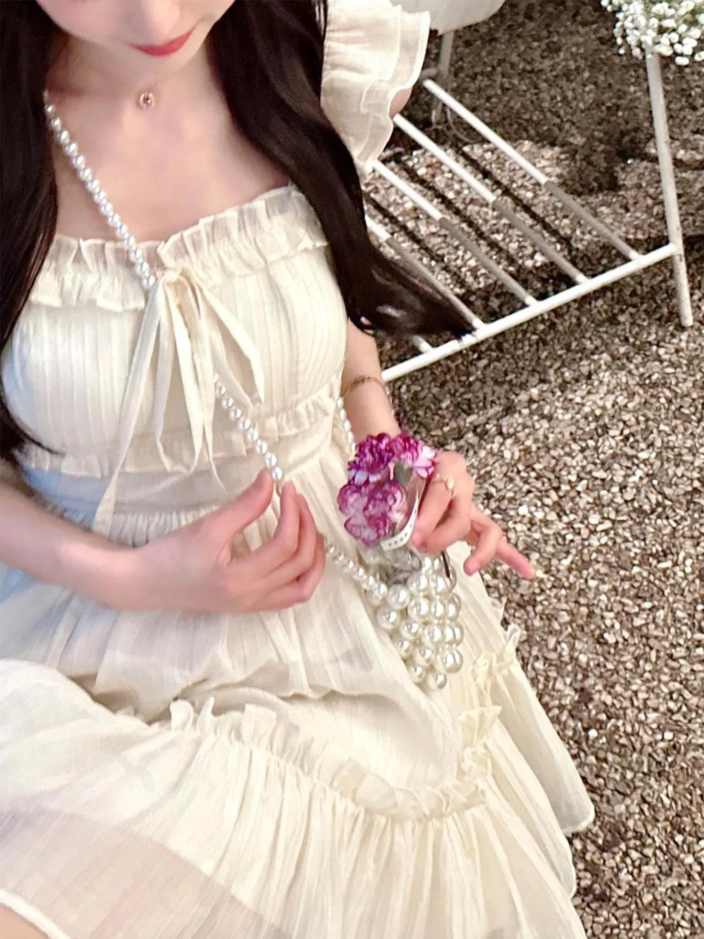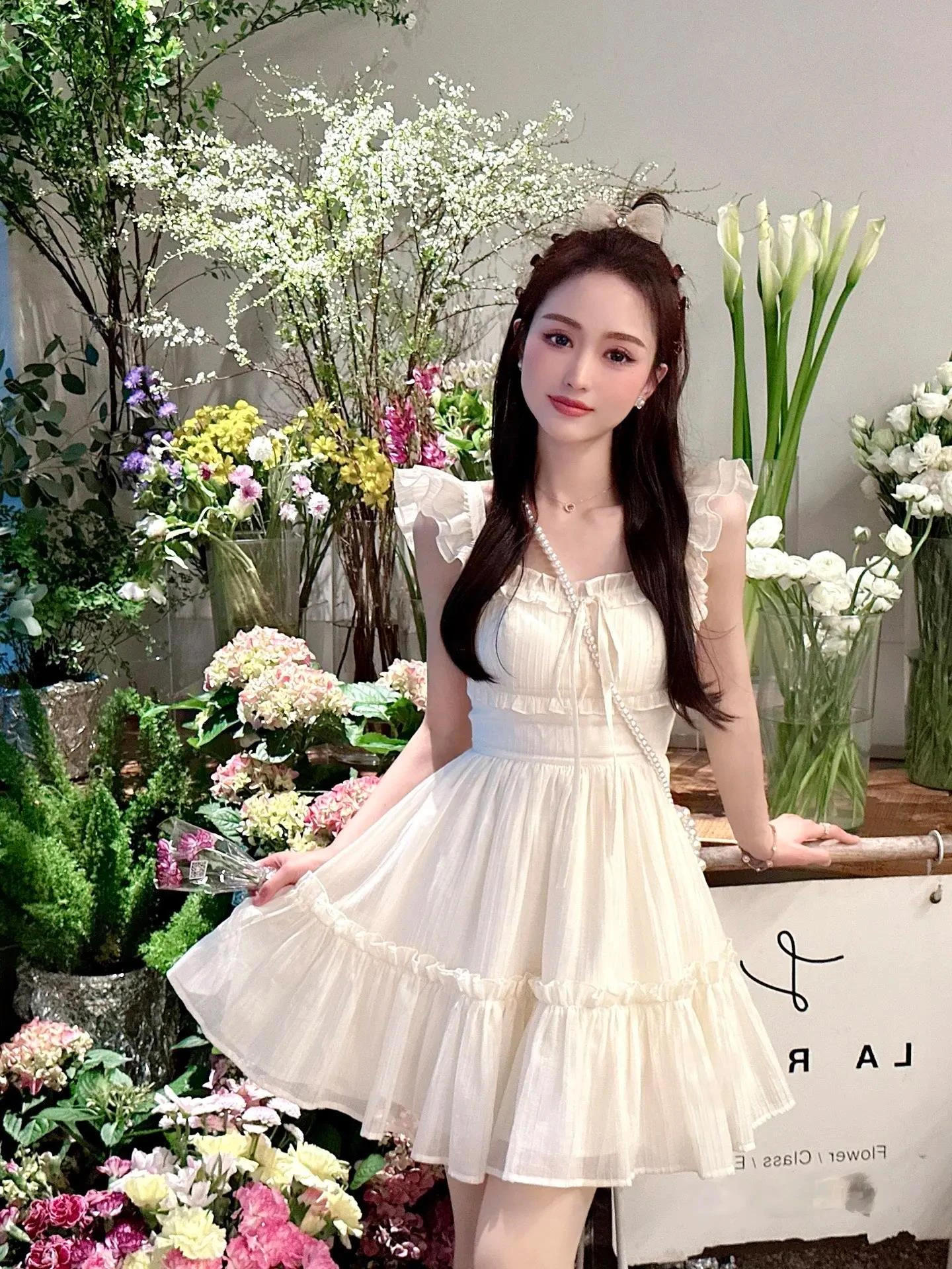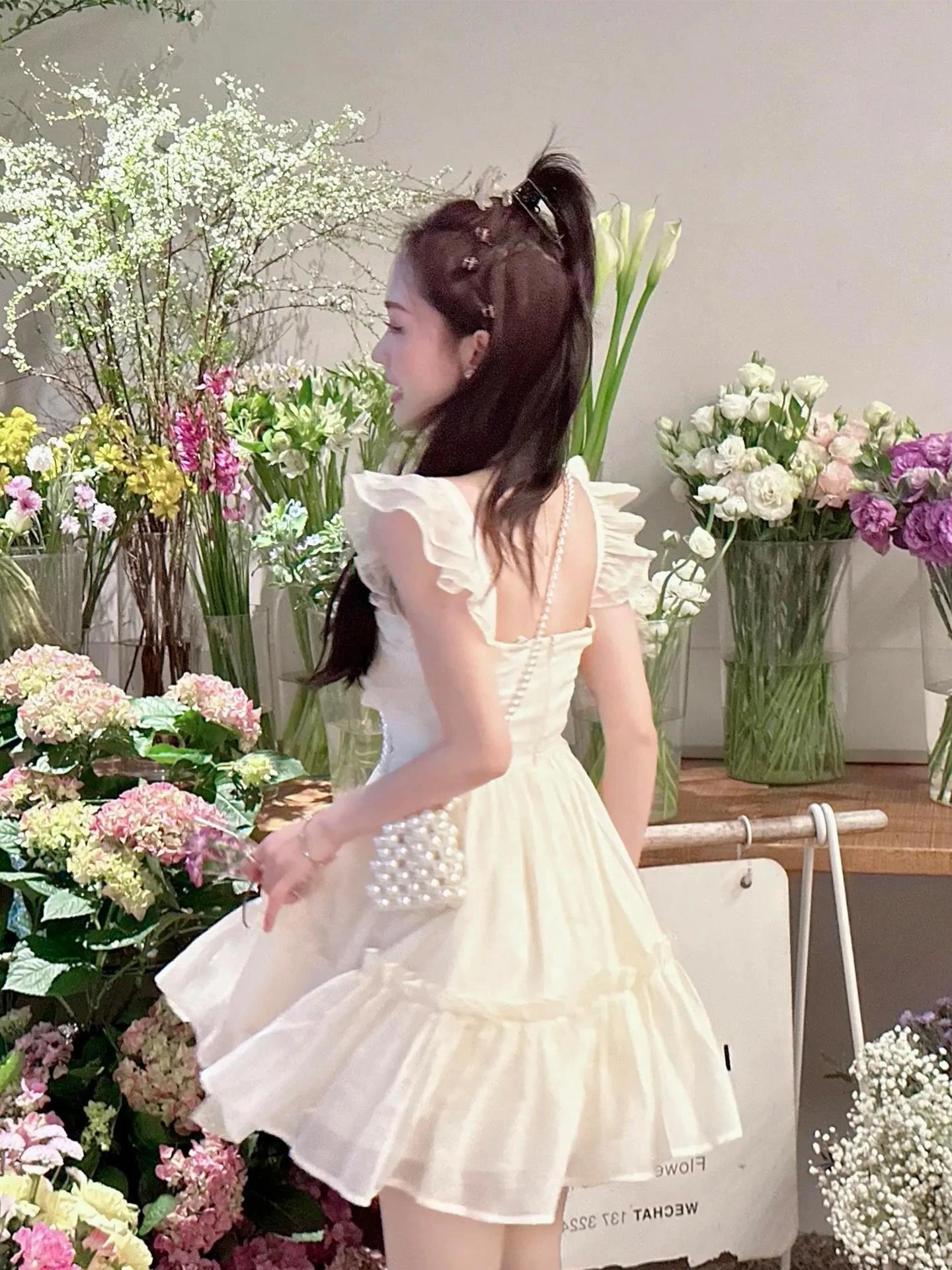 Featuring a high-waist, short skirt, and delicate butterfly knot, this dress exudes a sophisticated and youthful charm.