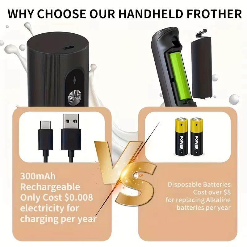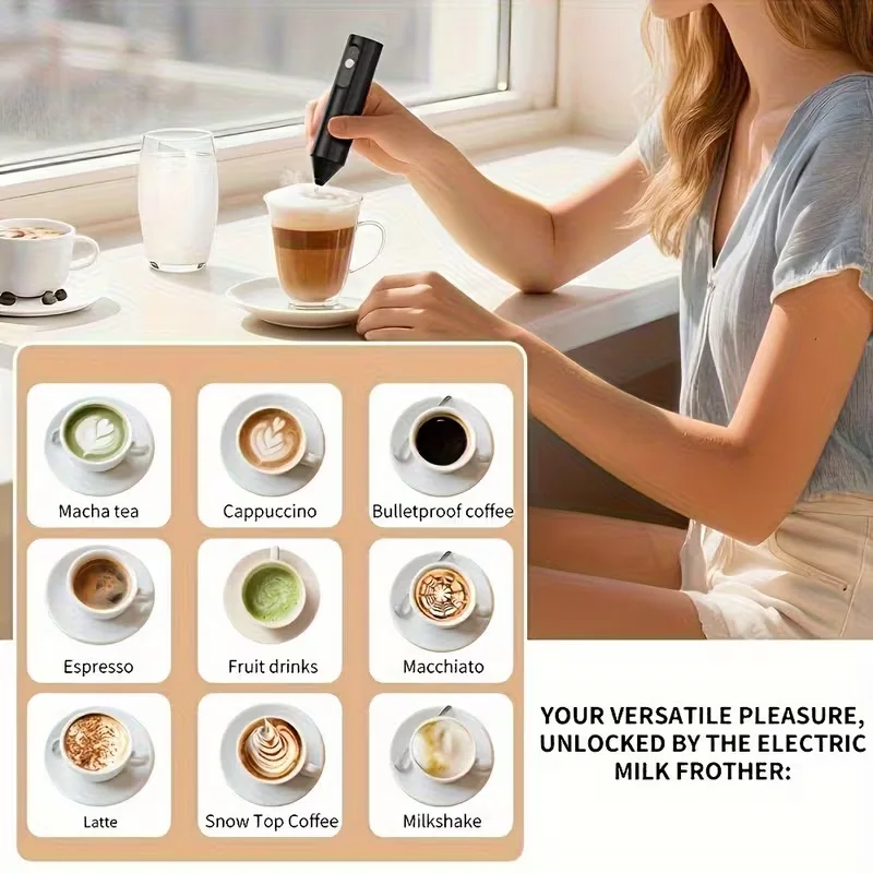 The handheld milk frother is designed for portability, making it easy to use in any kitchen or on-the-go.