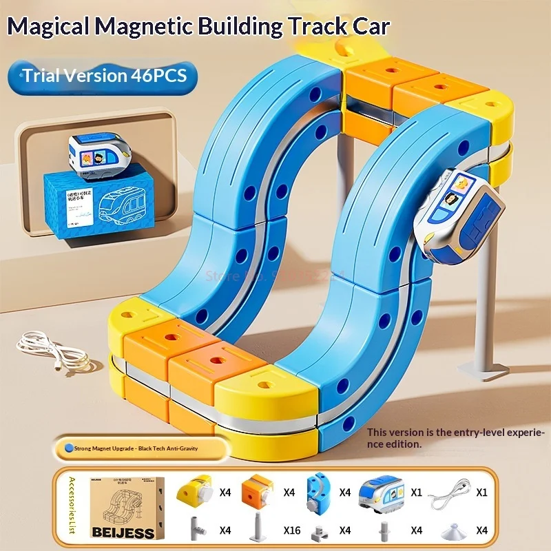 8/18/26/68PCS Magic Cube Magnetic Versatile Building Blocks Train Track Car Electric Anti-Gravity Children's Magnetic Track Car