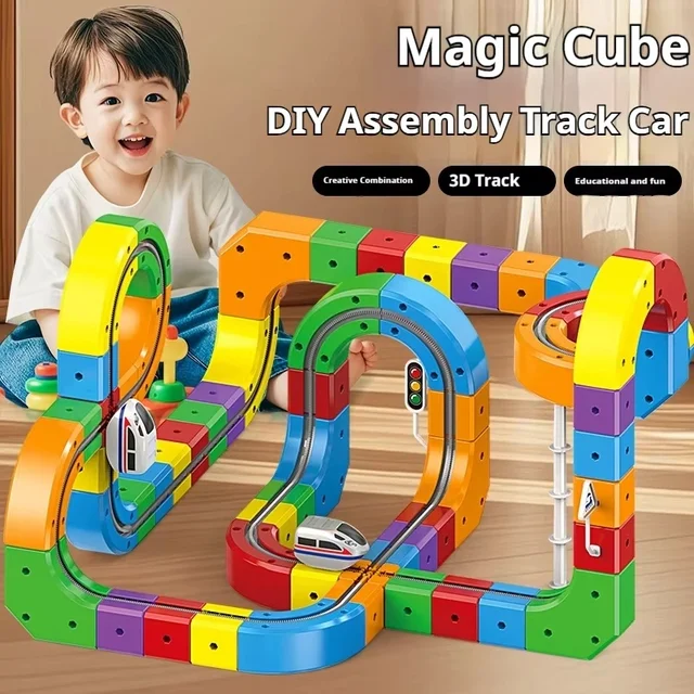 51/81/123PCS Children Magic Track Train Electric Assembled Building Blocks Magnetic Rail Car Maze Educational Toys for Kids Gift