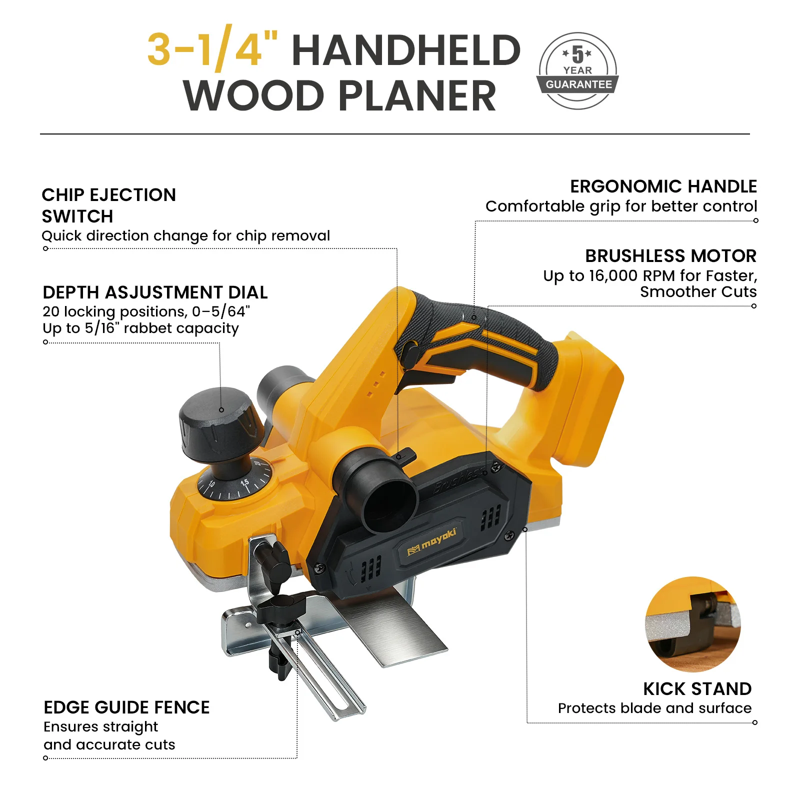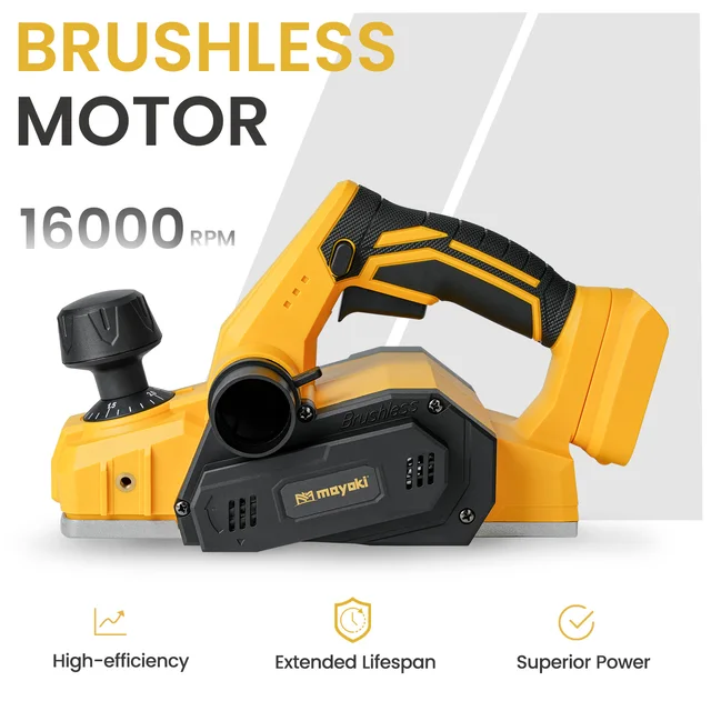 Brushless Efficient Planing: The brushless wood planer can operate at 16000 RPM with a 3-1/4 inch (82mm) planing width, making material processing effortless and efficient, reducing your workload