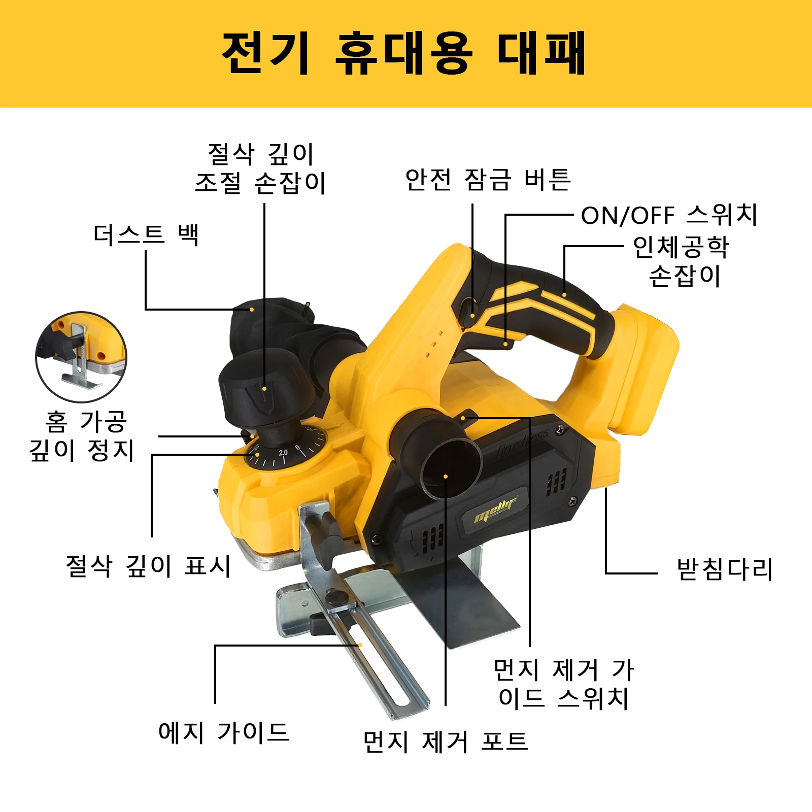 Safety Switch: This electric power planer starts only when you press both the on/off switch and the safety switch simultaneously.Safety switch design helps to prevent accidental activation of the tool, reducing the risk of injury or damage to the tool itself