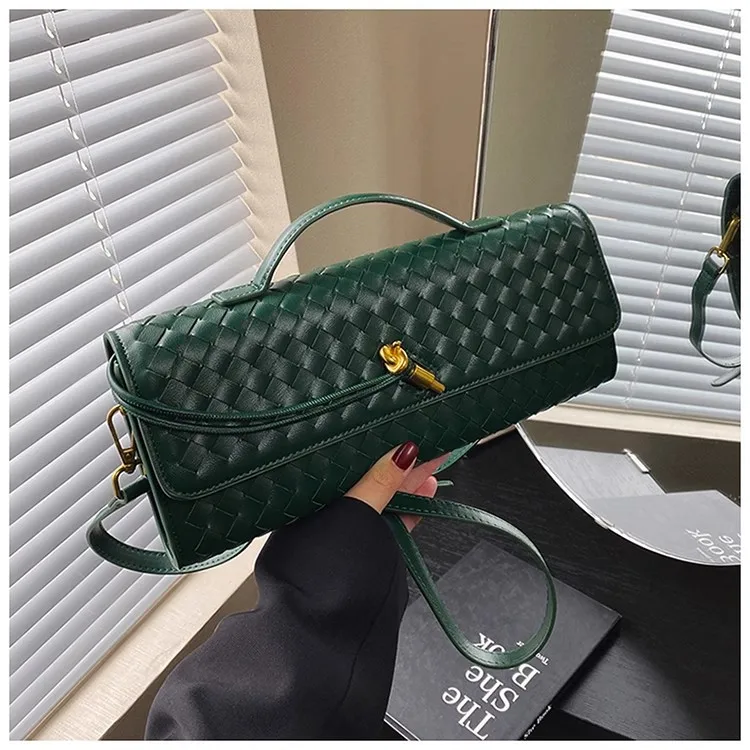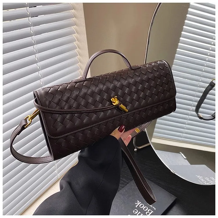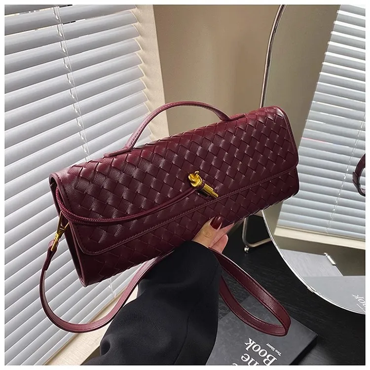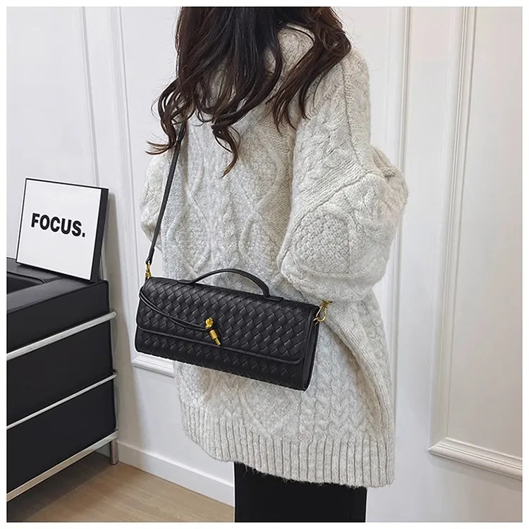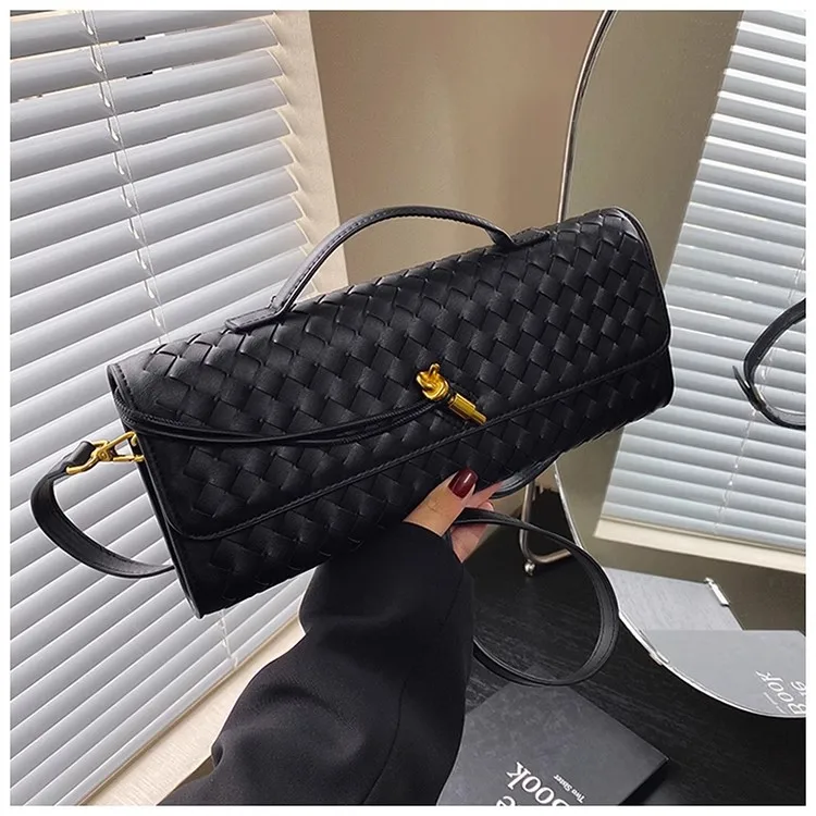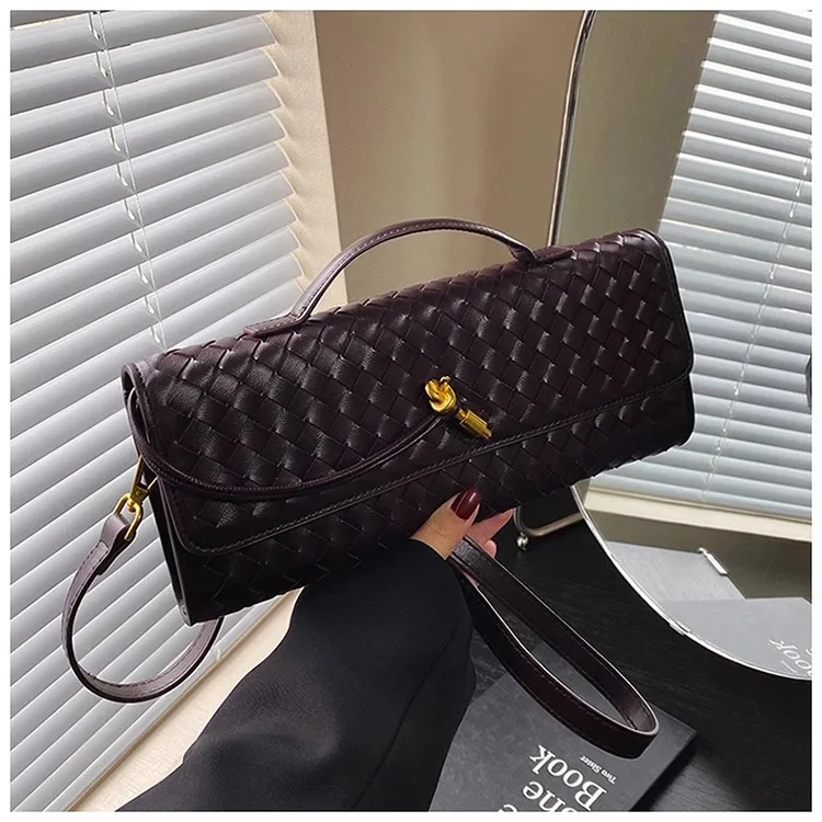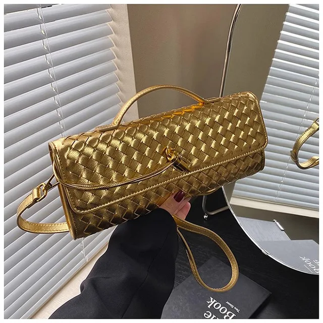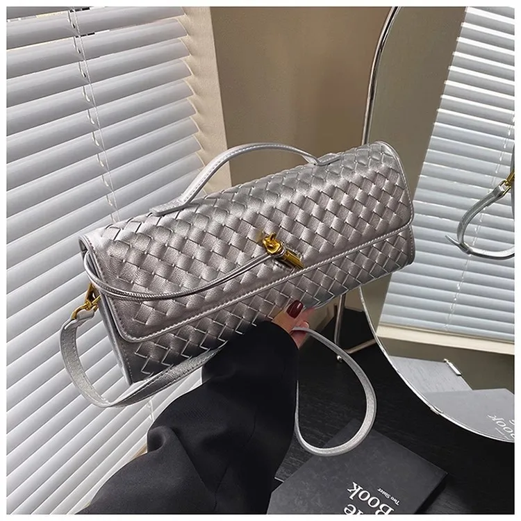 Elegant 2025 New Style Woven Dinner Bag Fashionable Precise Horizontal Handbag Single Shoulder Slant Cross Bag Breadstick Bag