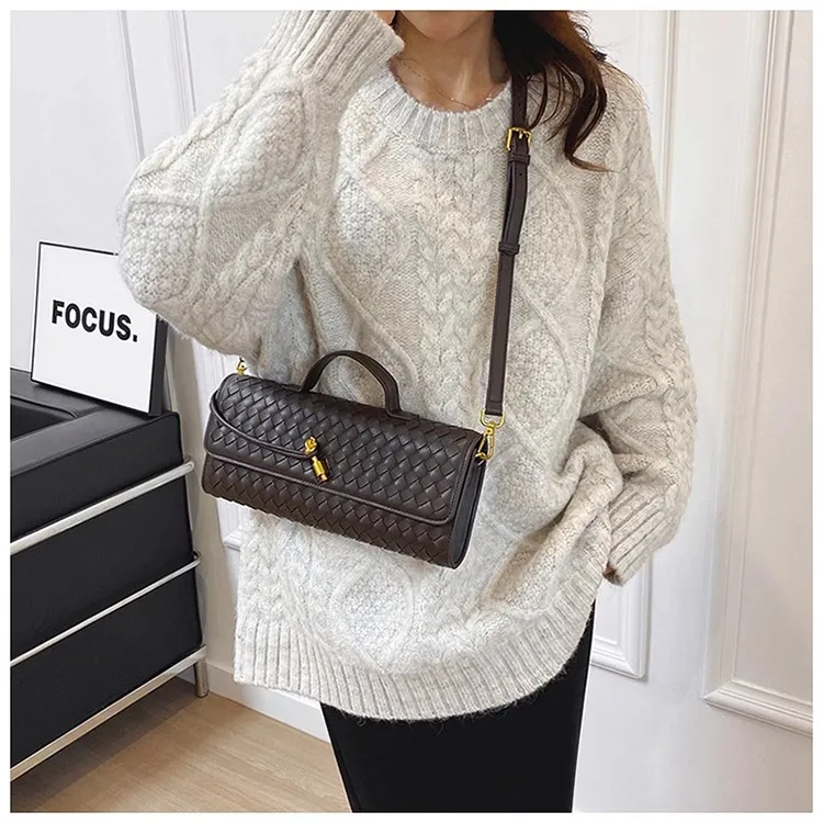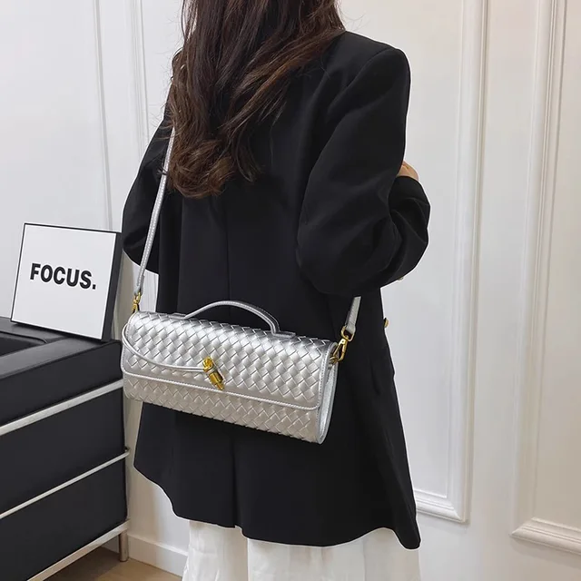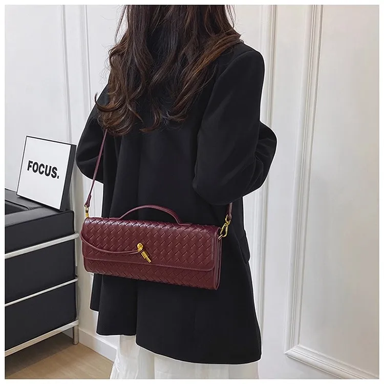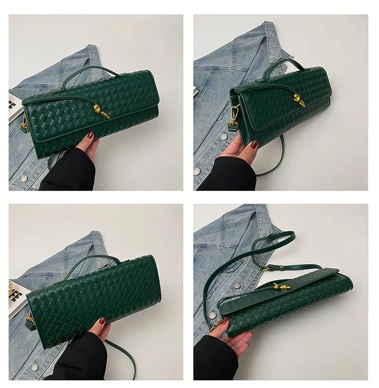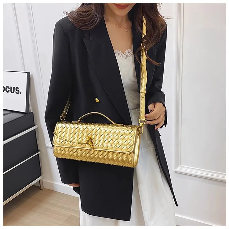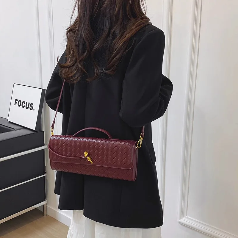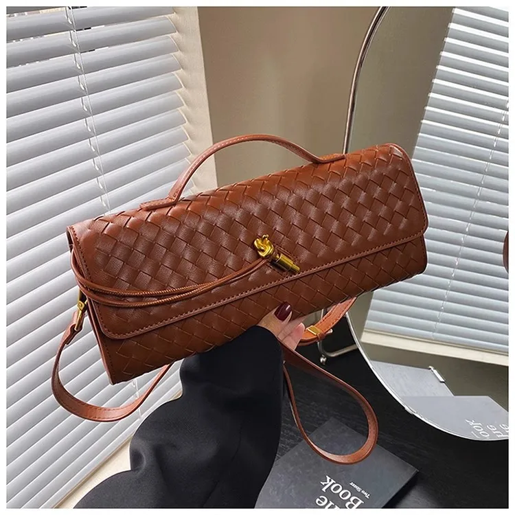 Elegant 2025 New Style Woven Dinner Bag Fashionable Precise Horizontal Handbag Single Shoulder Slant Cross Bag Breadstick Bag