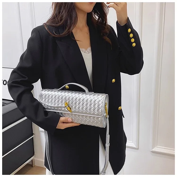 Elegant 2025 New Style Woven Dinner Bag Fashionable Precise Horizontal Handbag Single Shoulder Slant
