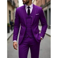Elegant 3 Piece Burgundy Men's Suits Full Set Single Breasted Peaked Lapel Blazer Formal Prom Business Suit with Vest And Pants
