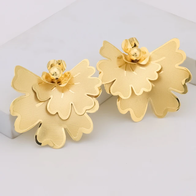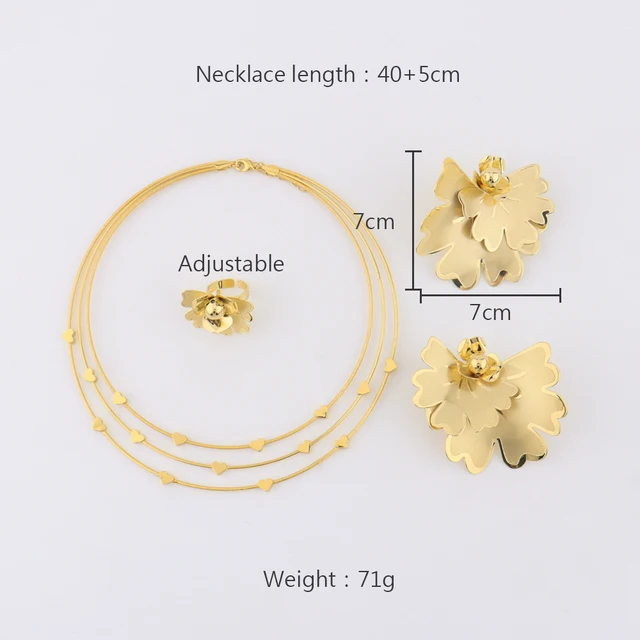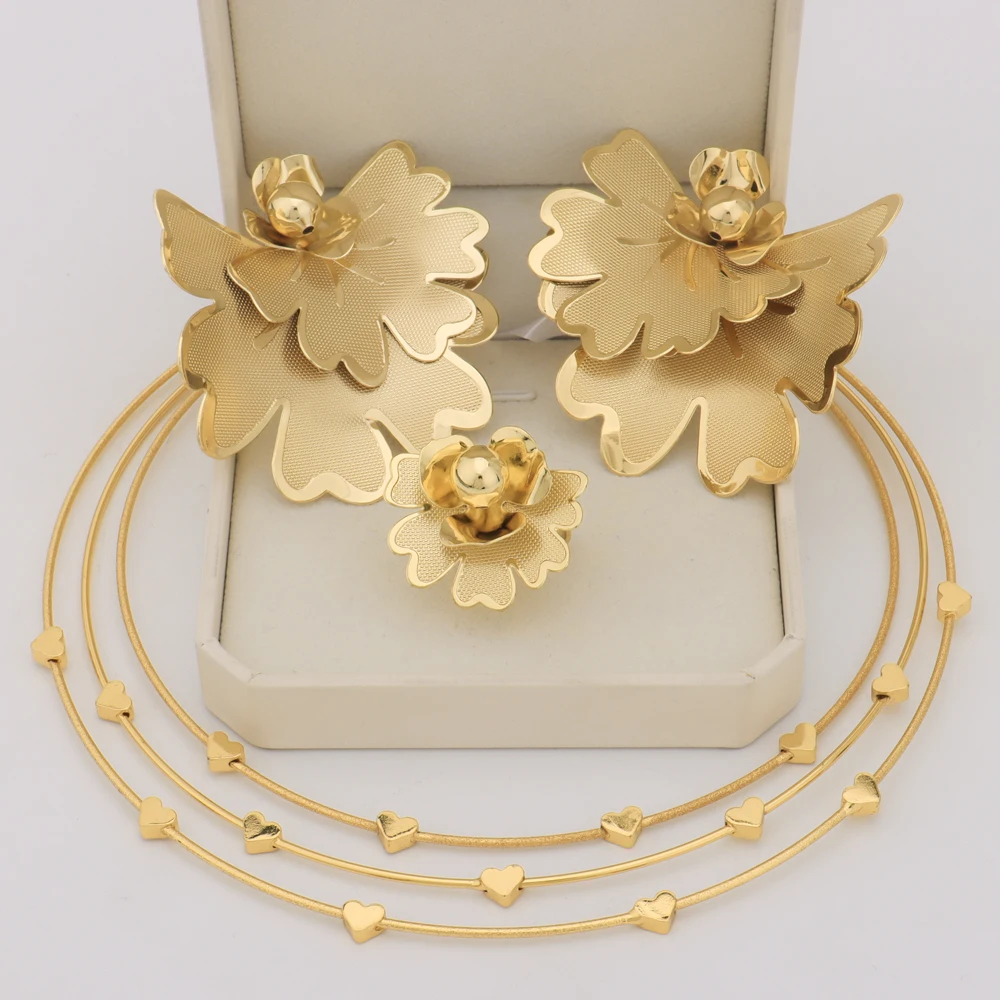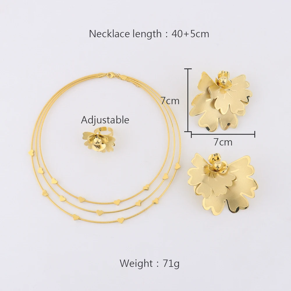 Elegant African Luxury Flower Jewelry Set for Women 2025 – Necklace, Ring & Earrings Party Accessories