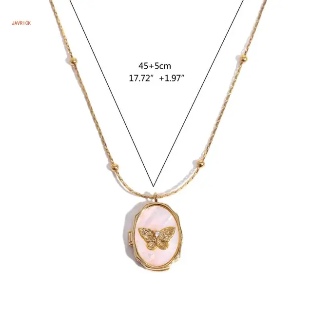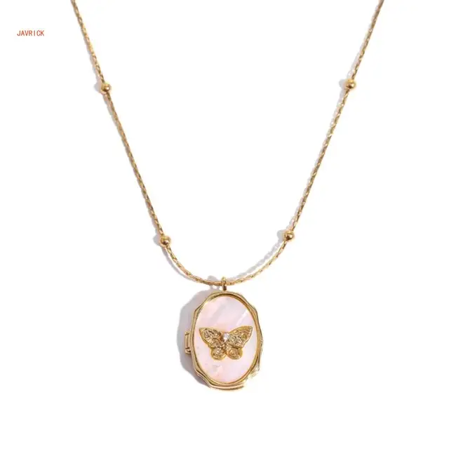 This metal seashells butterfly photo album frame pendant necklace is a must have for those who love vintage style.