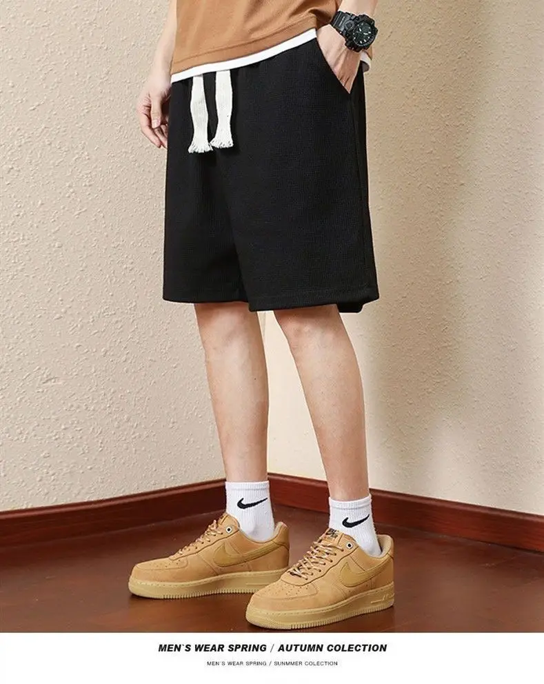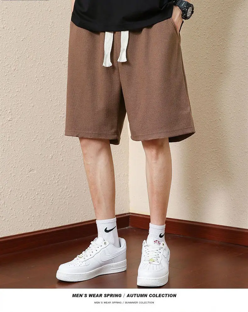 Elegant Fashion Harajuku Slim Fit Male Clothes Loose Casual Sport All Match Shorts Solid Pockets Thin