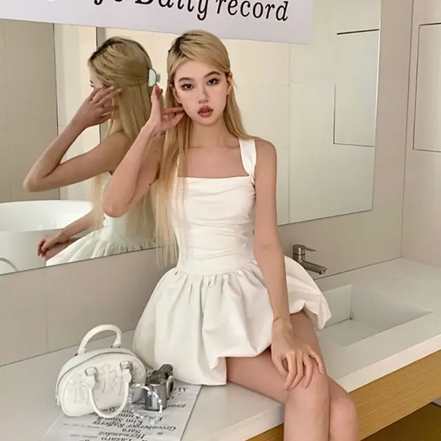 Elegant French Style Camisole Dress Sleeveless Slim Fit Bud Dress Black White Short Dress Women Girl