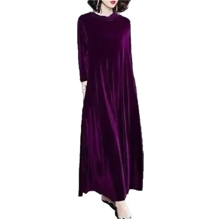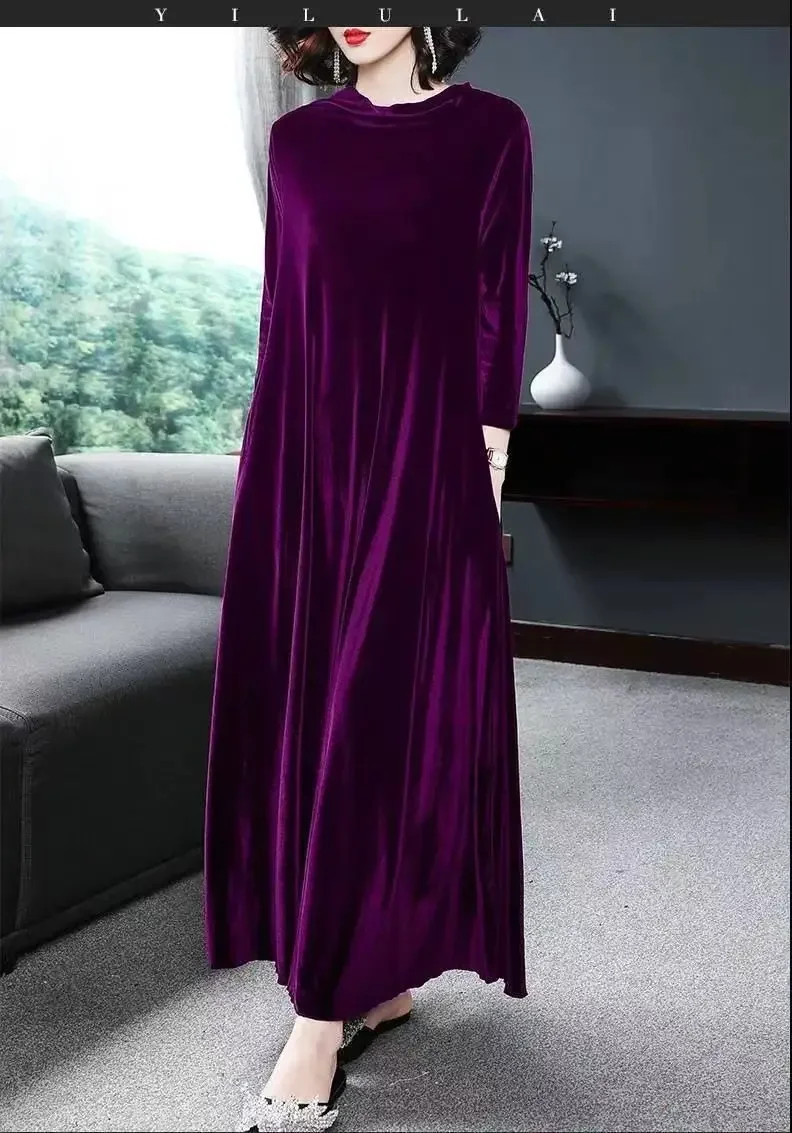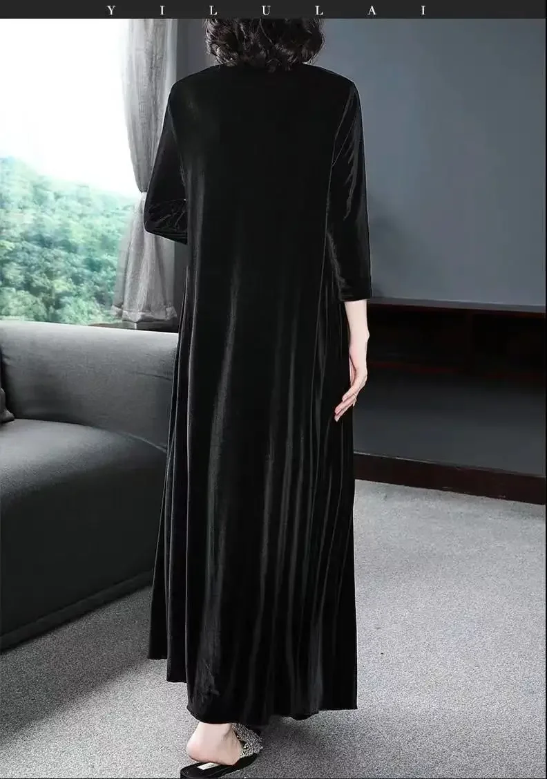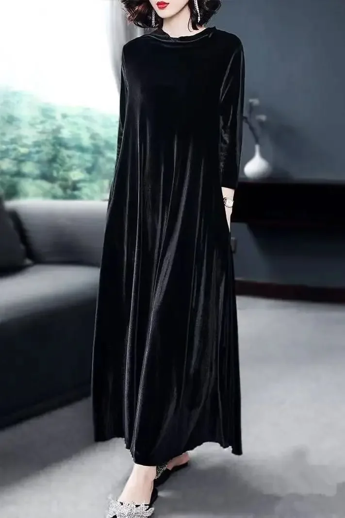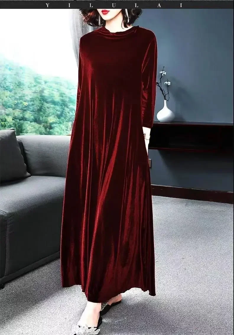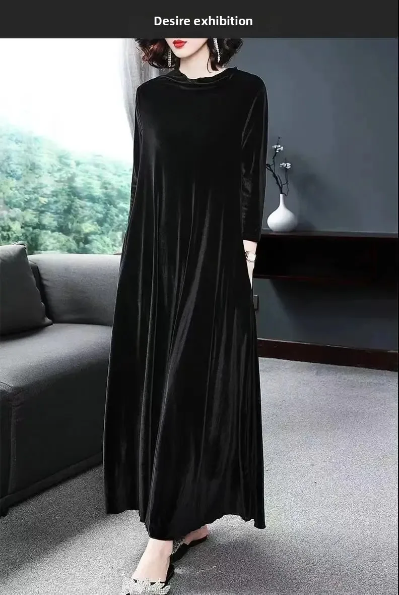 • Gold Velvet Material : Crafted from gold velvet, this dress exudes luxury and warmth, ideal for autumn and winter wear.
