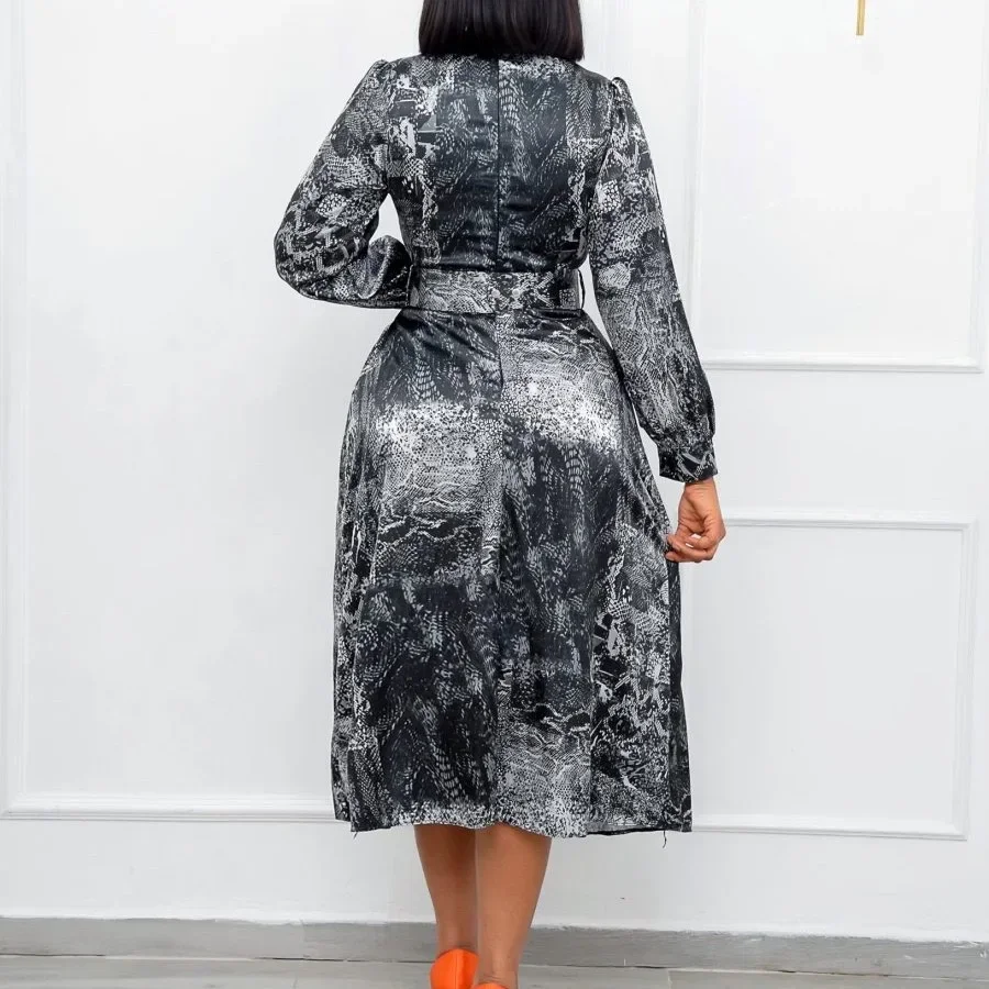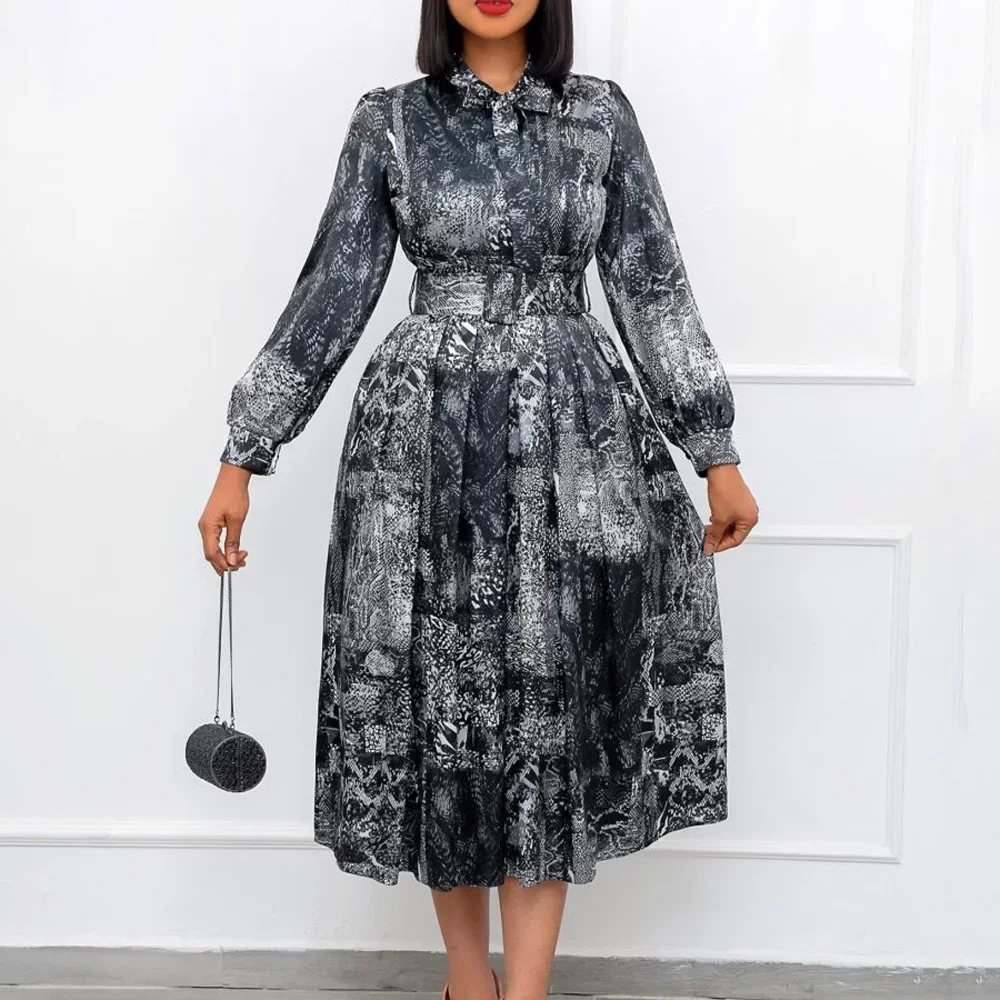 Elegant Vintage Dresses for Women Bow Collar Full Sleeve Belt Waisted A Line Mid Calf Birthday Party