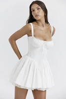 Elegant Women Summer Lace Floral Patchwork Corset Mini Dress Sleeveless Square Neck Tie-up Short Tank