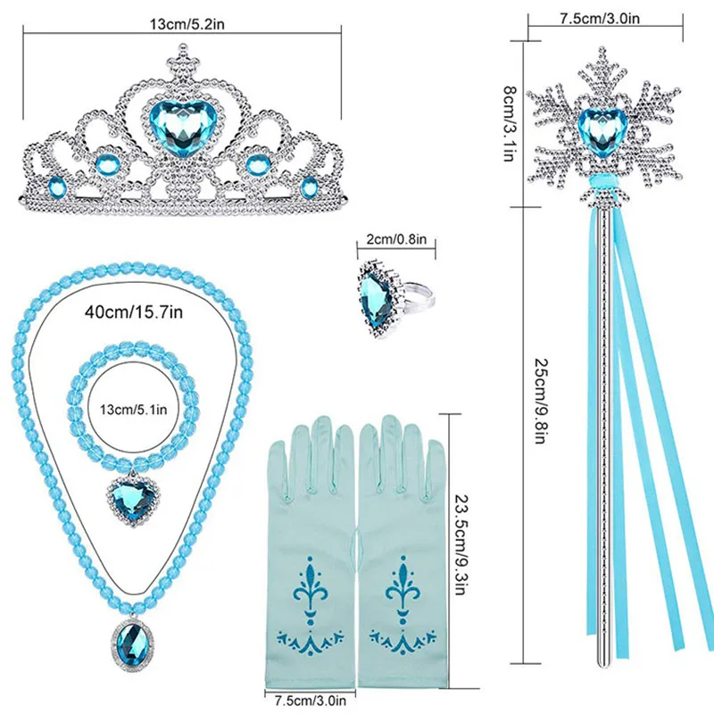 Elsa Princess Accessories Gloves Wand Crown Jewelry Set Elsa Wig Necklace Braid for Princess Dress Clothing