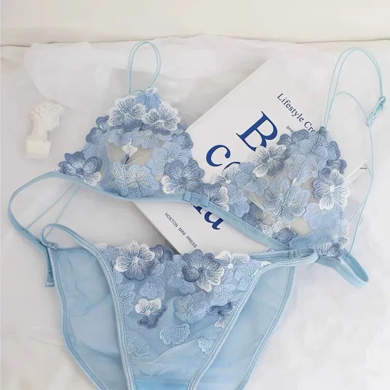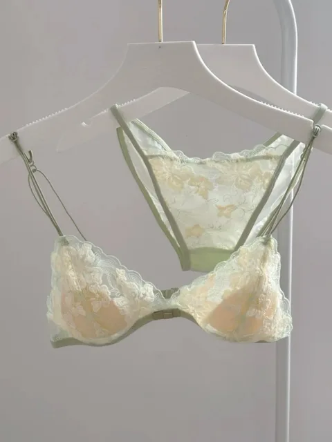 Ultra Thin Bralette for Small Bust Women French Lace Embroidery Wireless Comfort Sexy Back Beauty Everyday Bra Set BANERDANNI