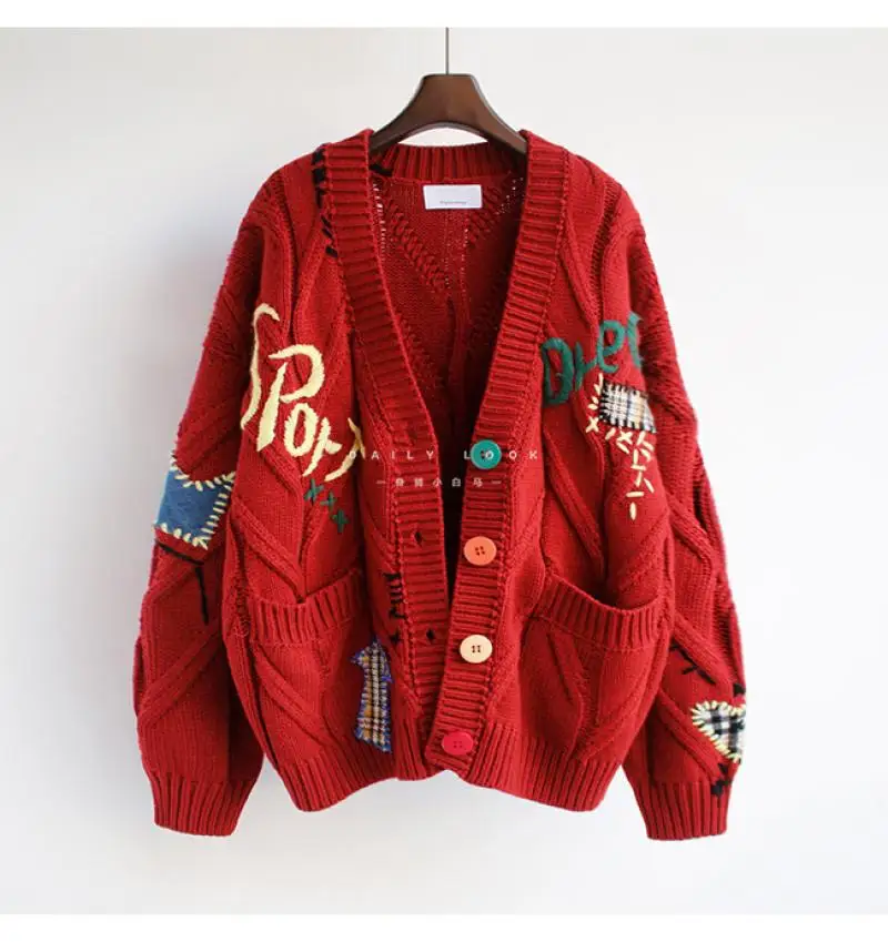 Embroidered Sweater Women’s Autumn and Winter 2025 New Style Letter Design Loose Knit Sweater Jacket