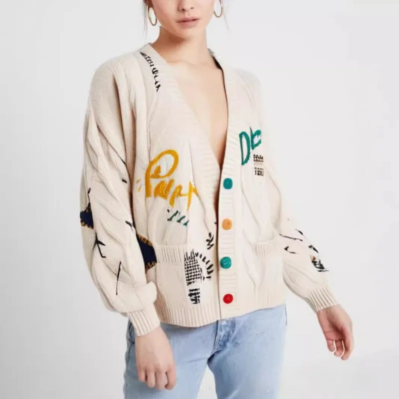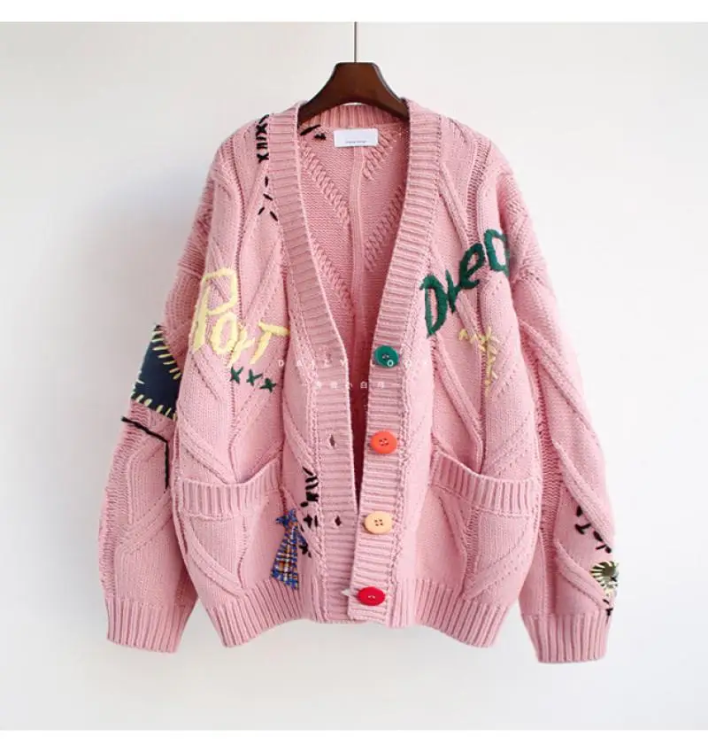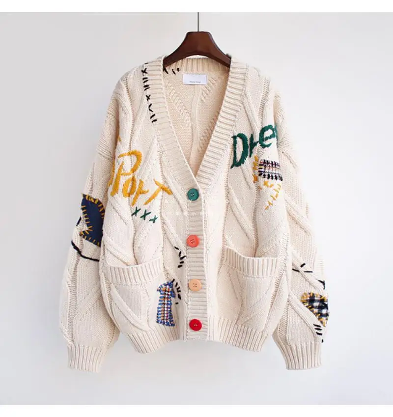 Embroidered Sweater Women's Autumn and Winter 2025 New Style Letter Design Loose Knit Sweater Jacket Trend