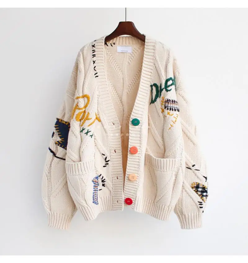 Be the first to review “Embroidered Sweater Women’s Autumn and Winter 2025 New Style Letter Design Loose Knit Sweater Jacket”