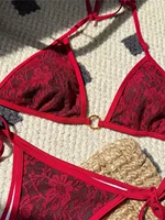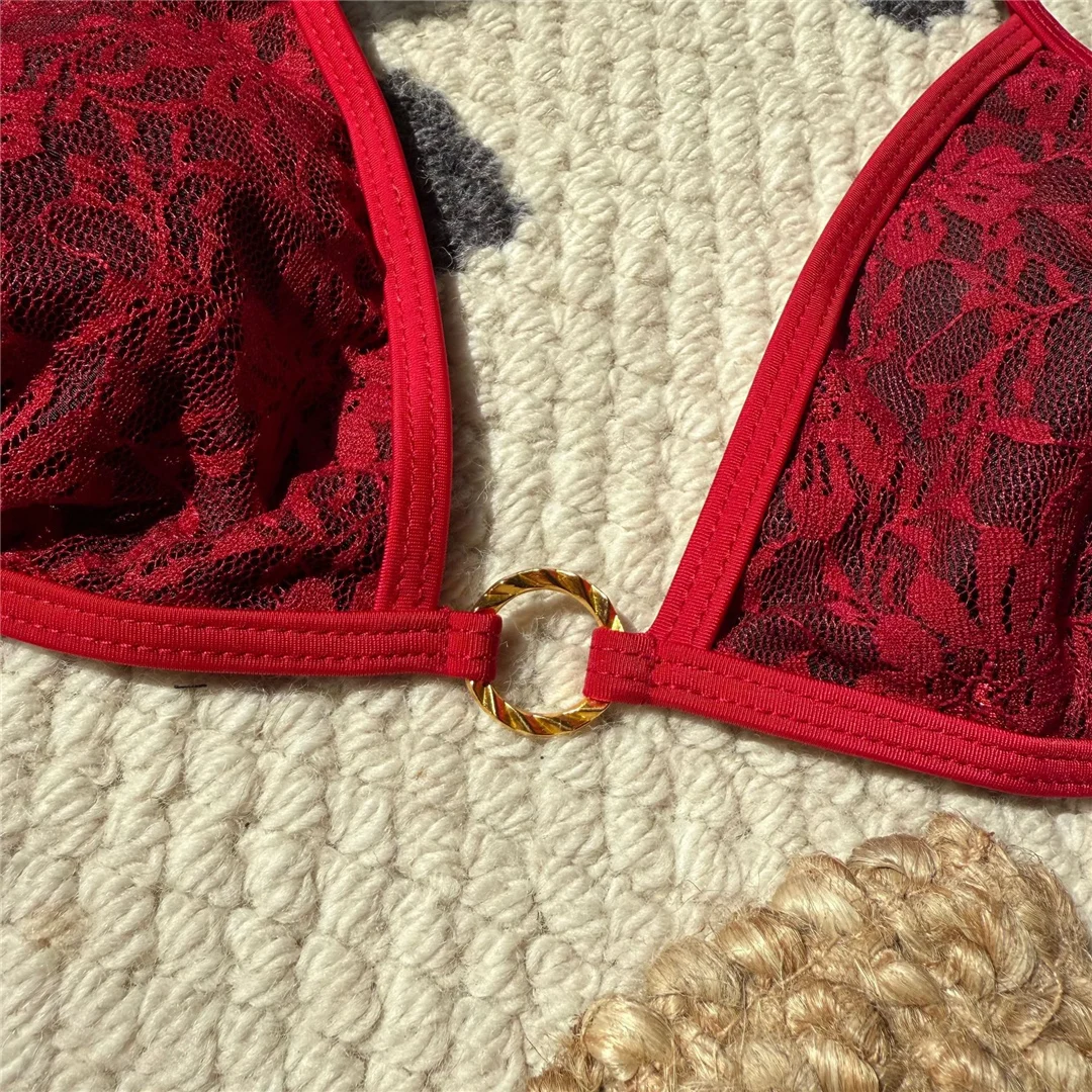 Embroidery Halter High Leg Cut Bikini Female Swimsuit Women Swimwear Two-pieces Bikini set Padded Bather