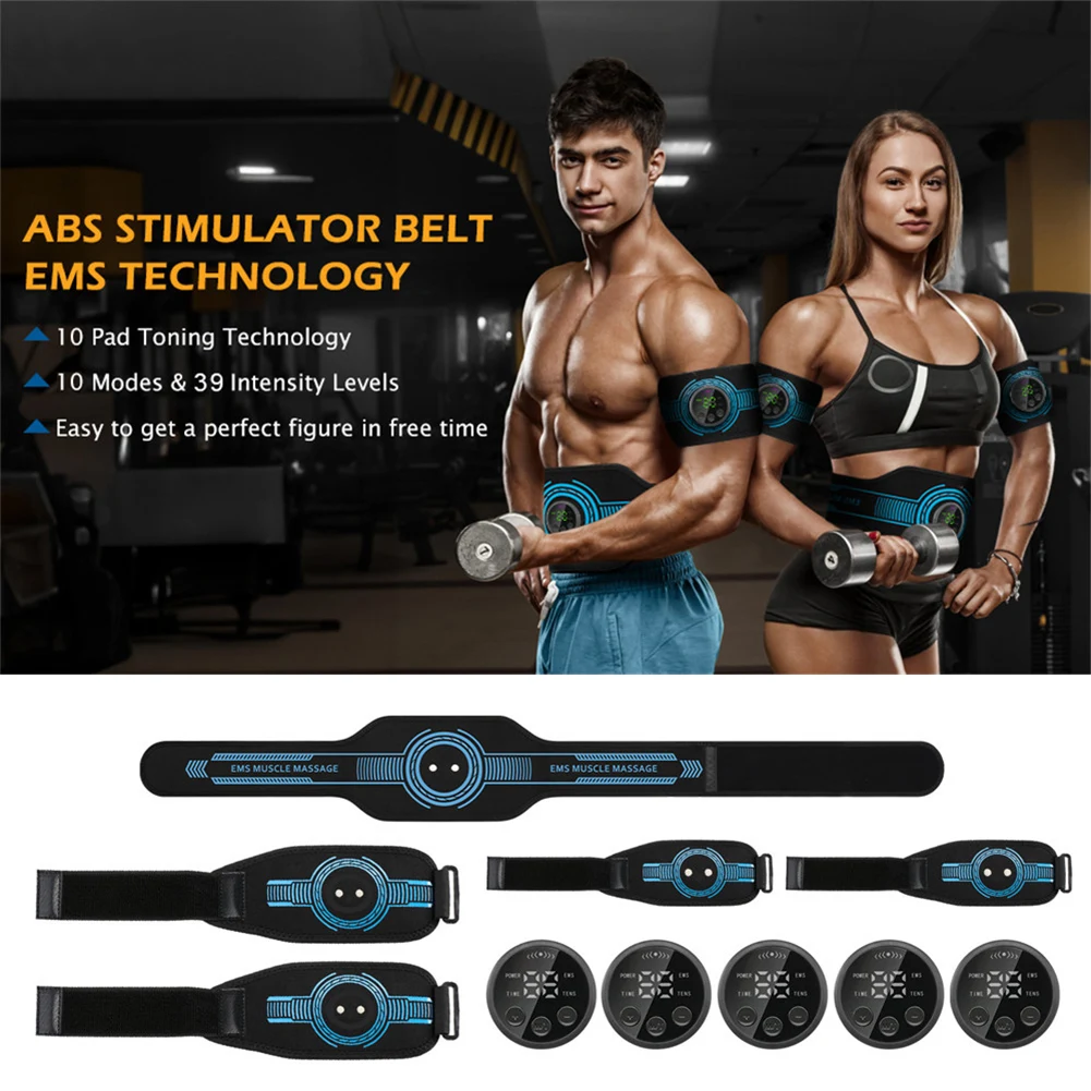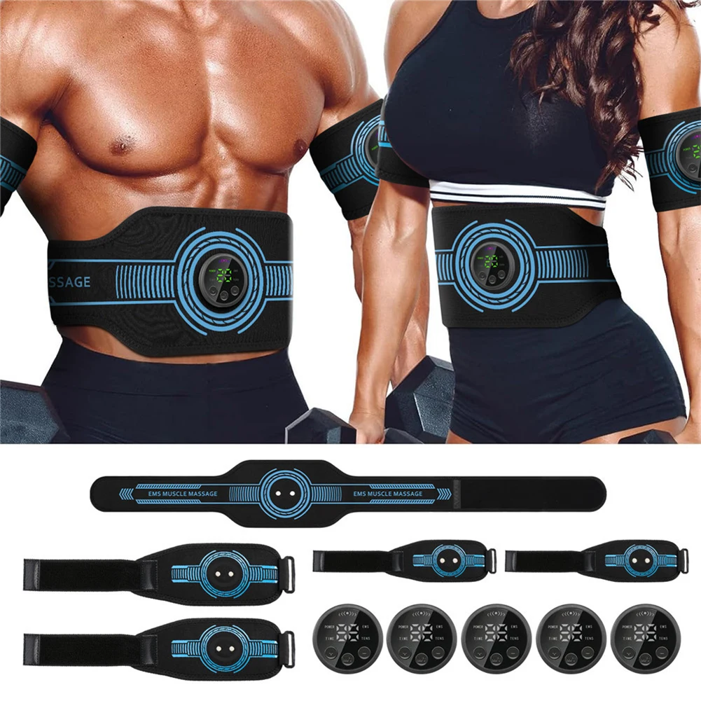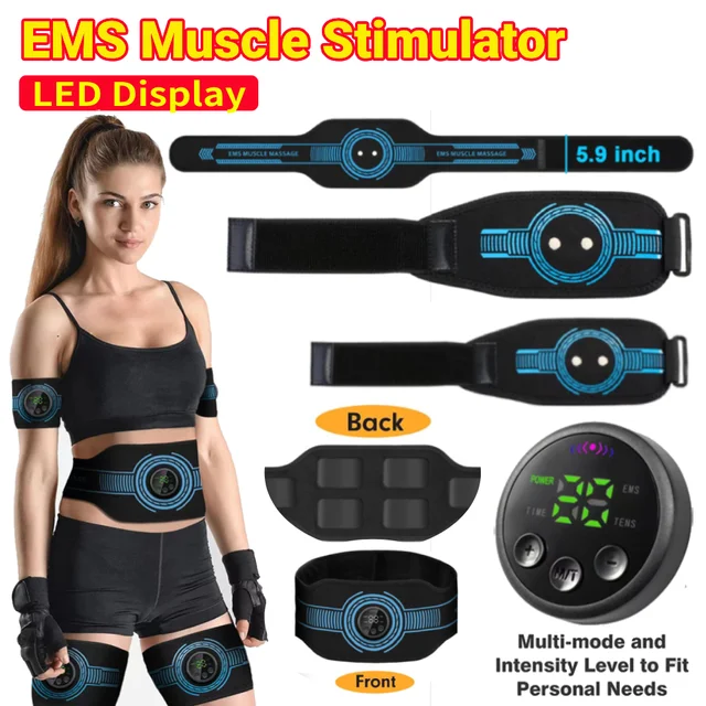 EMS Muscle Stimulator USB Rechargeable Abdominal Training Belt Adjustable Ab Workout Equipment LED Display