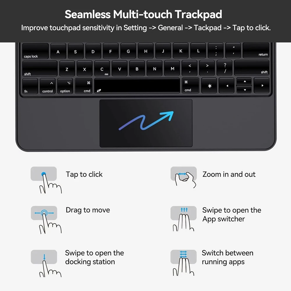 Note 1:You need to upgrade iPad OS to version 15.0 or higher to use the touchpad.
