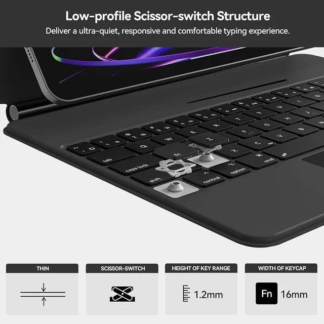 Magnetic adsorption, backlight, touch panel, multi angle support、Wireless Bluetooth connection