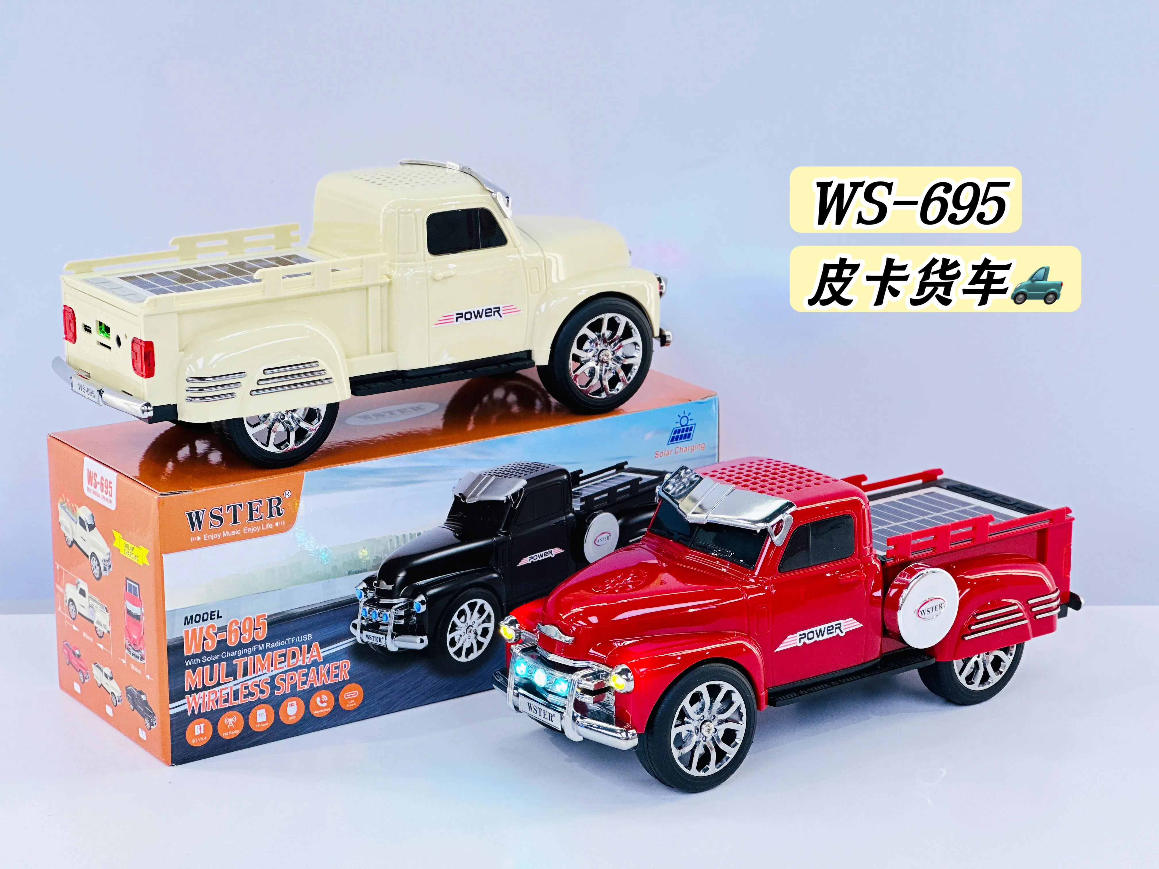 EONKO WS-695 Solar Charging Pickup Truck Wireless Bluetooth Speaker with TF USB FM AUX Handsfree Type C Charging LED Light