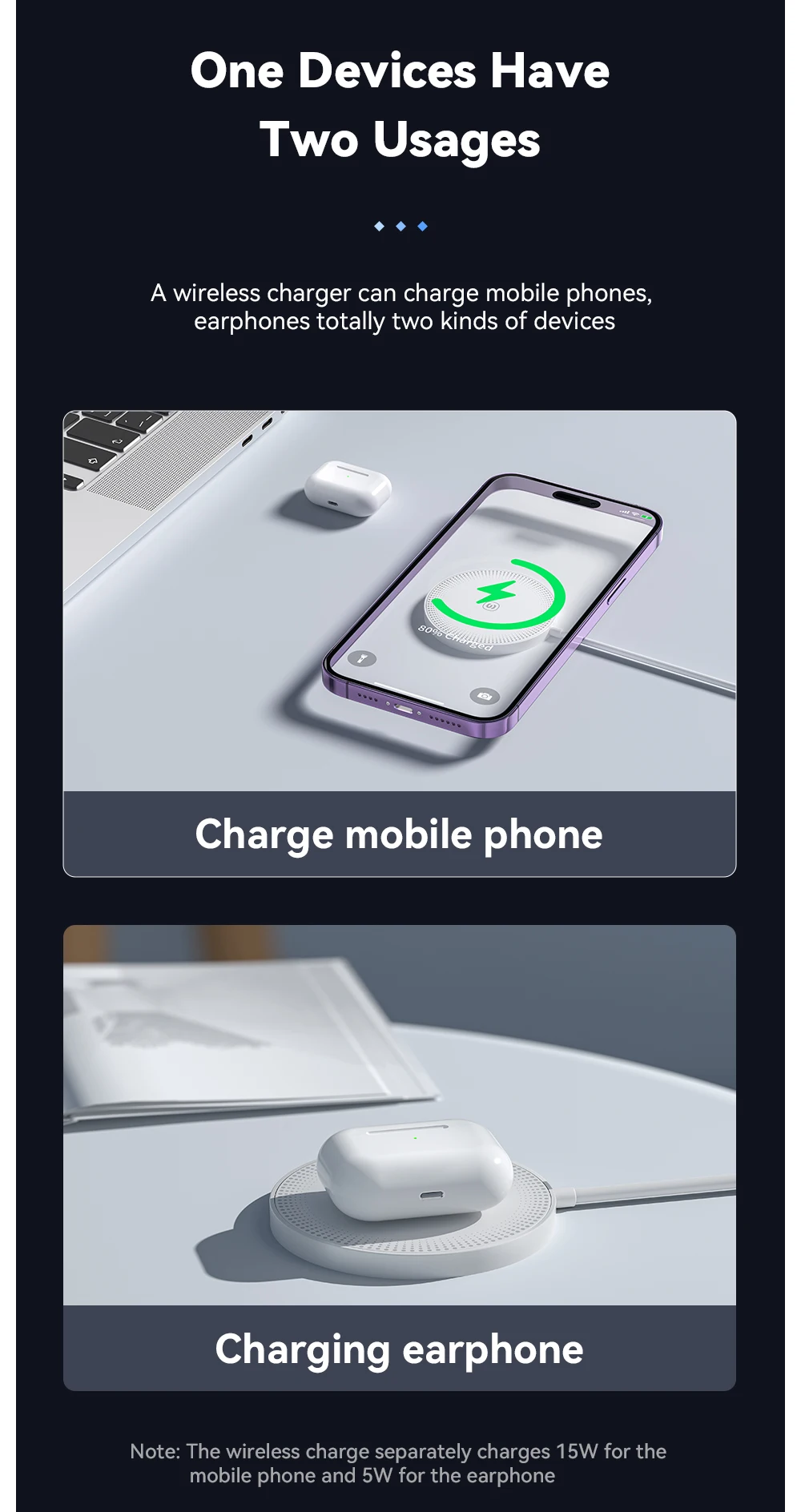 3. Support 5W/7.5W/10W/15W multiple charging modes, smart and fast charging will not damage the machine