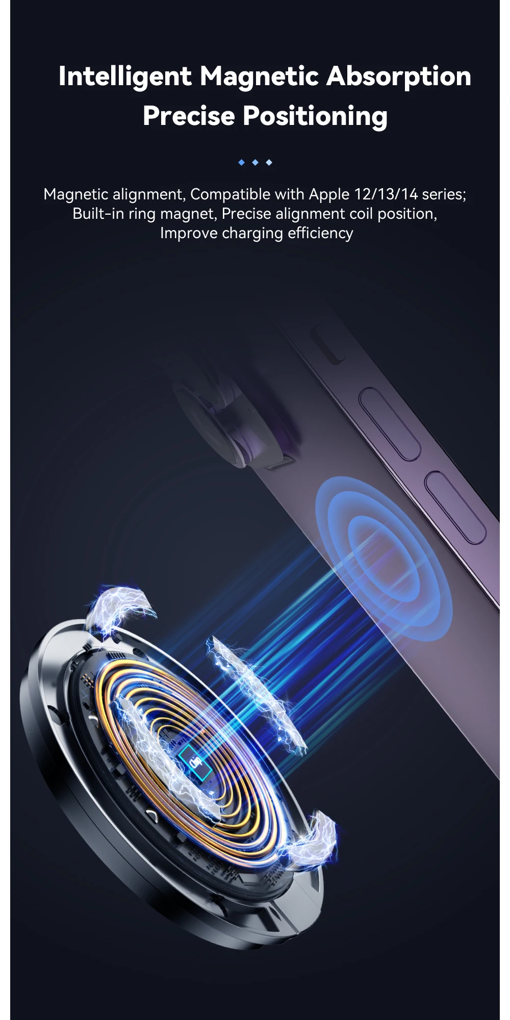 2. Magnetic wireless charging is automatically absorbed and precisely aligned, increasing charging efficiency by 50%. 3.