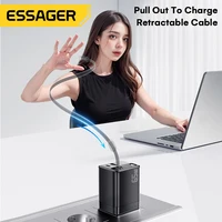 Essager 65W GaN Charger with Retractable Cable PD Fast Charging for Laptop Macbook iPhone 17 16 15 Xiaomi