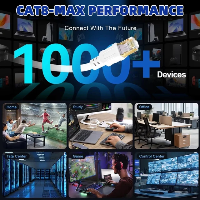 Ethernet Cable CAT8 Flat 40Gbps 2000MHz Rj45 Internet Network Cable Shielded Patch Cable Cat8 for PC