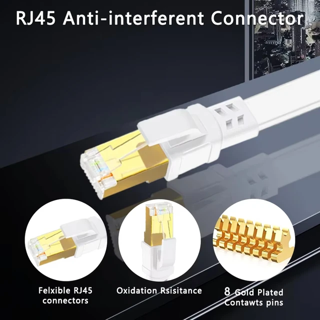 Be the first to review “Ethernet Cable CAT8 Flat 40Gbps 2000MHz Rj45 Internet Network Cable Shielded Patch Cable Cat8 for PC”