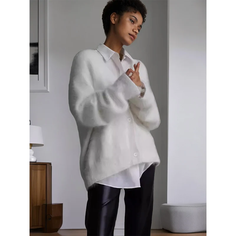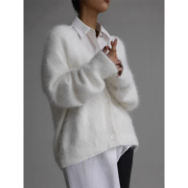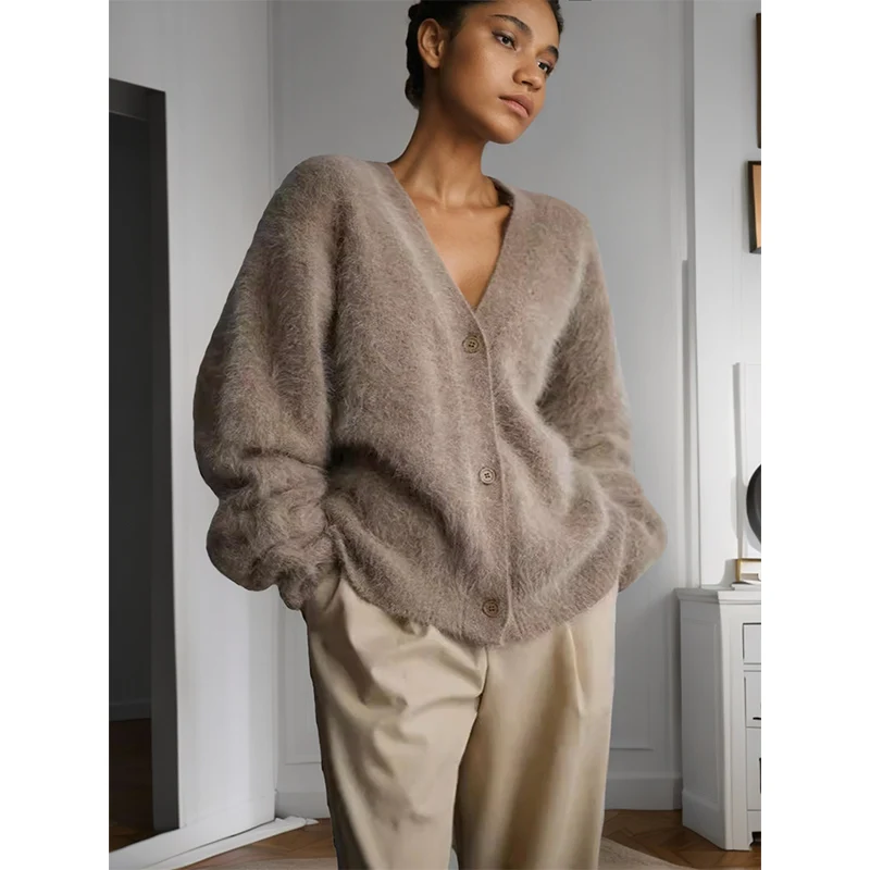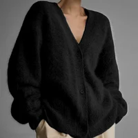 Autumn and Winter New Cardigan Long-sleeved Wool Solid Colour Knitted Long Top Jacket Woman