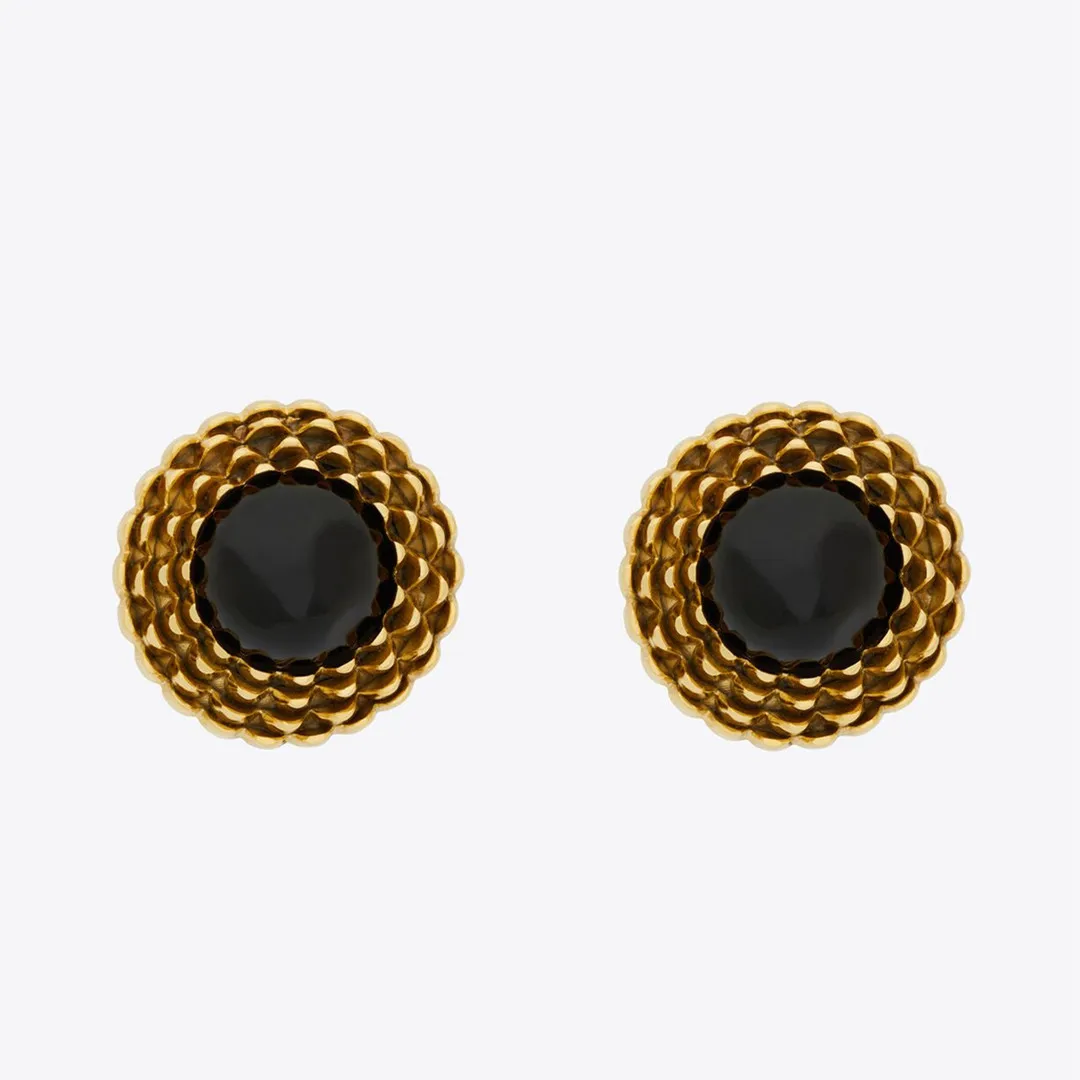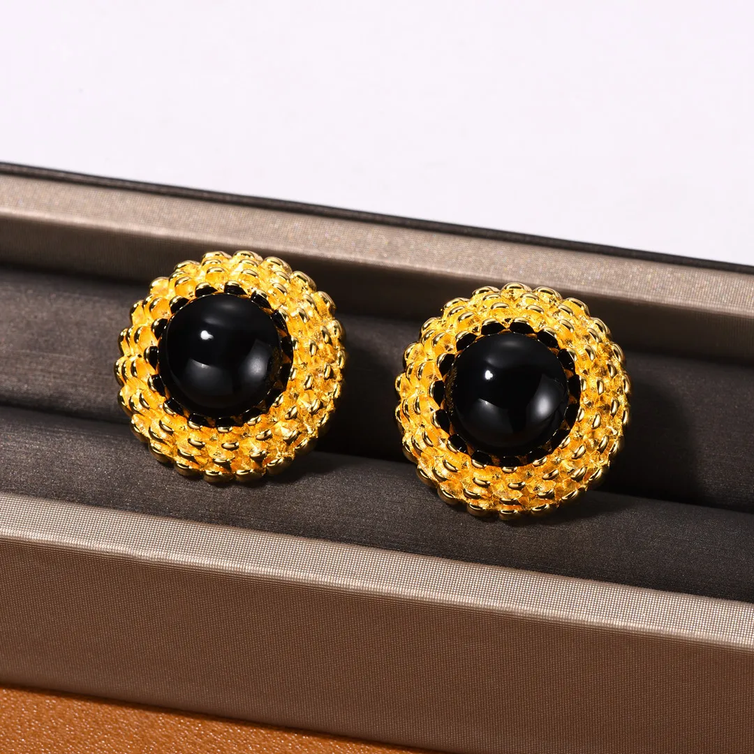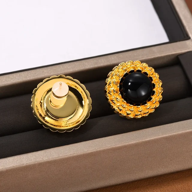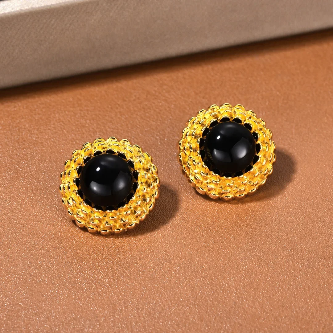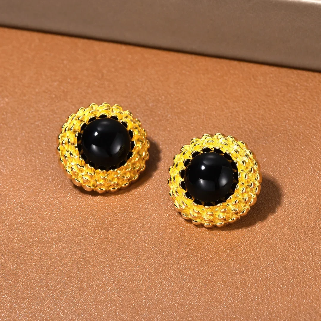 Material: Brass plated 18k gold + black agate + S925 silver needle