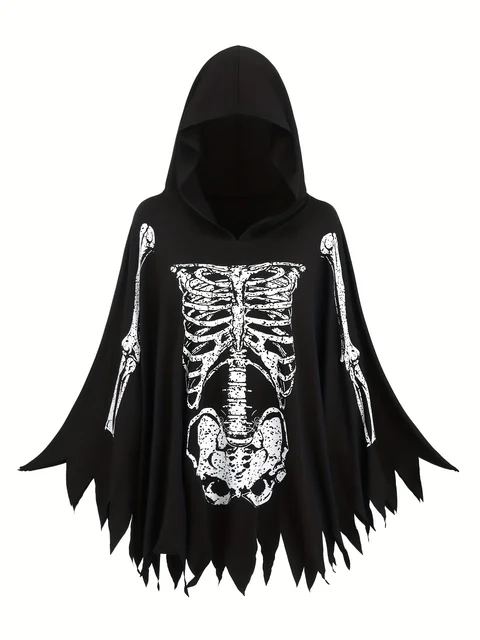 European and American fashion Halloween role-playing black skull ghost print plus size women’s