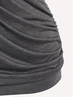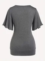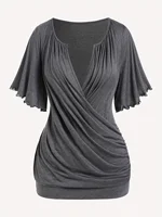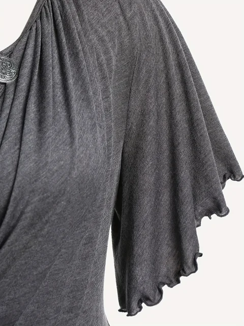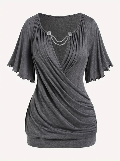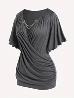 European and American new hit fashion women’s pleated chain embellished V-neck plus-size T-shirt