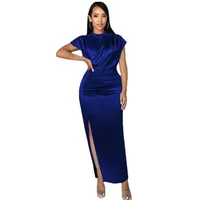 European and American Women’s New Colored Satin Zipper Split High Grade Dress Long Floor Length