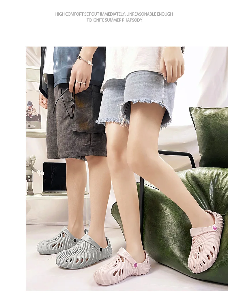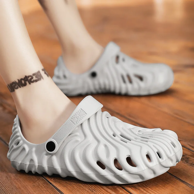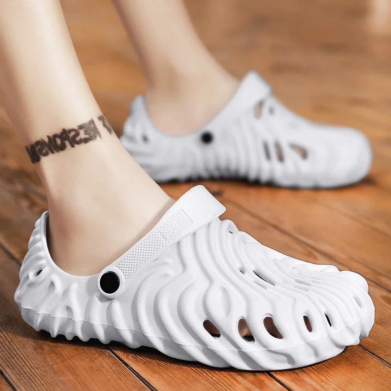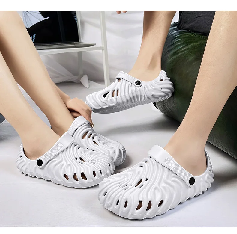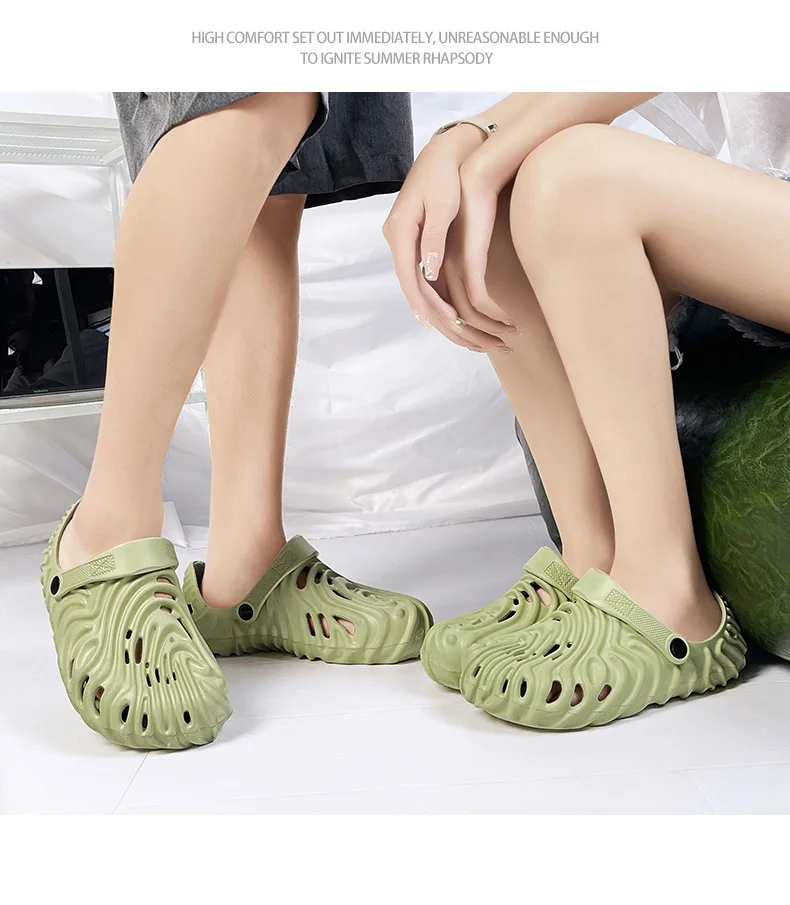 EVA Thick Heel Slippers for Men Summer Outdoor Sports Couple Hole Head Sandals Anti-Slip Soft Bottom
