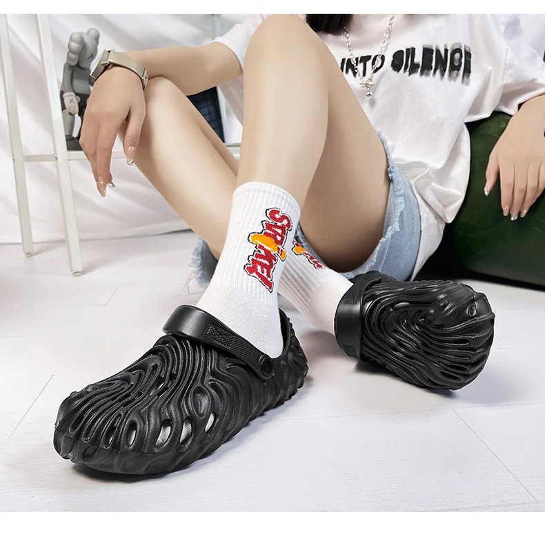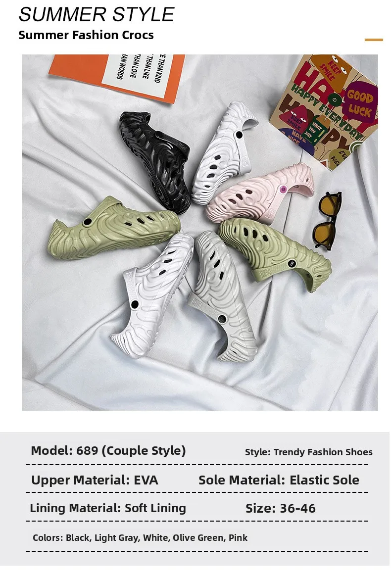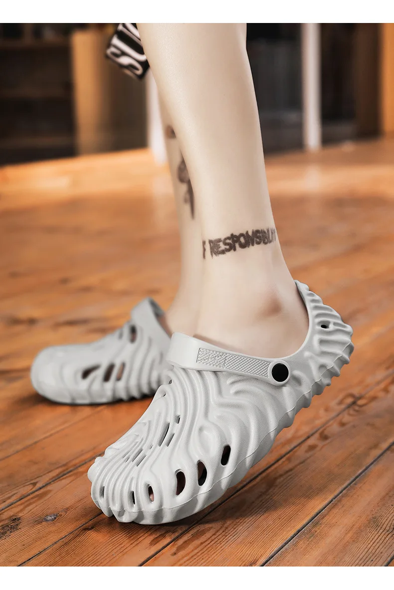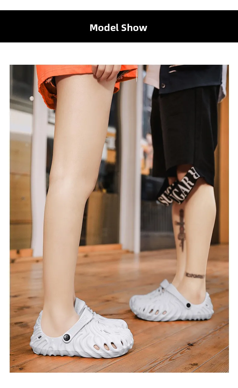 EVA Thick Heel Slippers for Men Summer Outdoor Sports Couple Hole Head Sandals Anti-Slip Soft Bottom