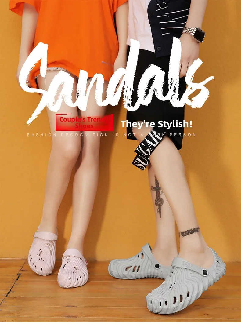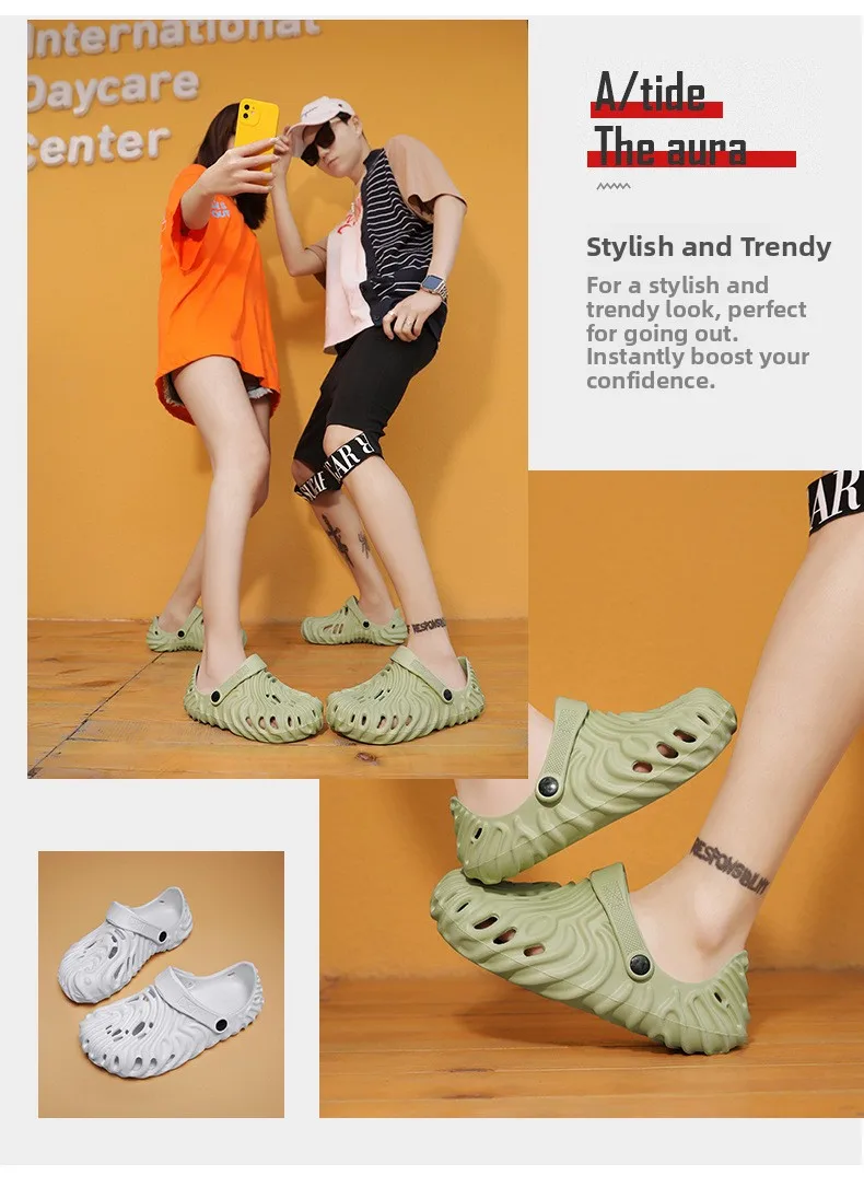 EVA Thick Heel Slippers for Men Summer Outdoor Sports Couple Hole Head Sandals Anti-Slip Soft Bottom Beach Shoes