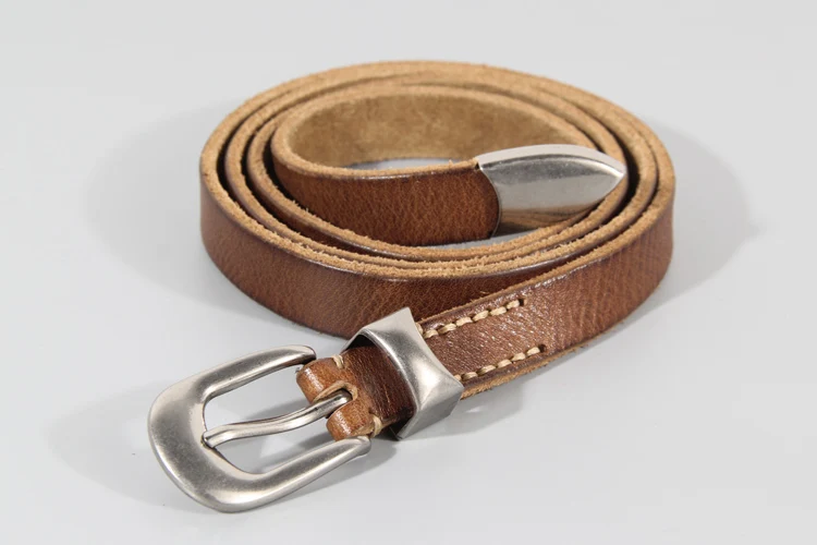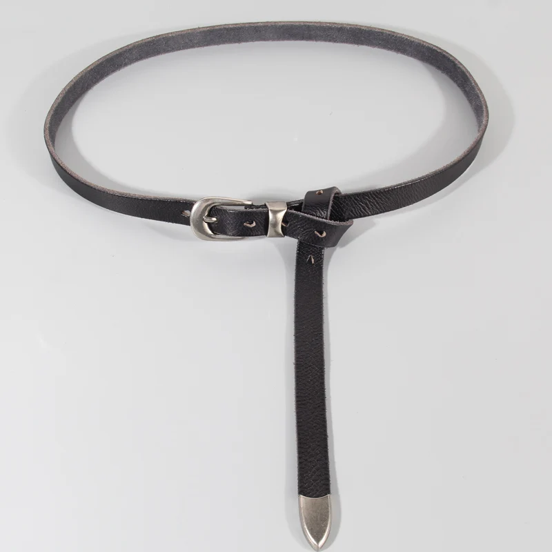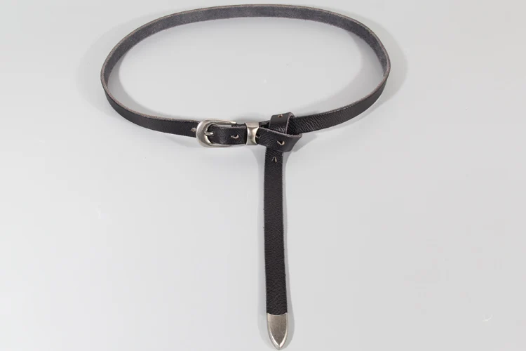 120CM Extended Thin Section Knotted Decorative Ladies Belt All-match Slim Skirt Belt Narrow Soft Genuine Leather Women’s Jeans Belt