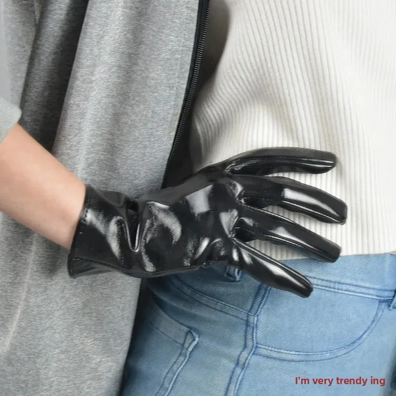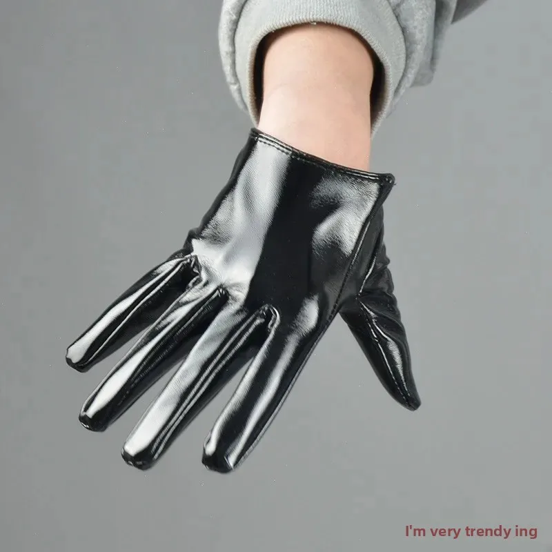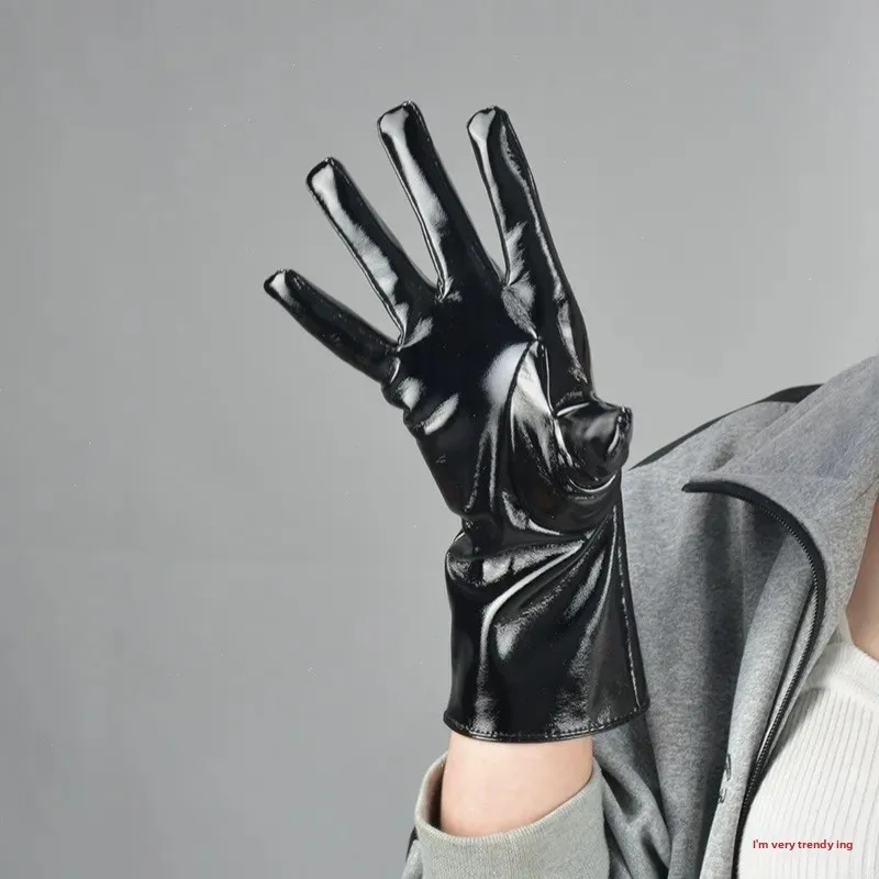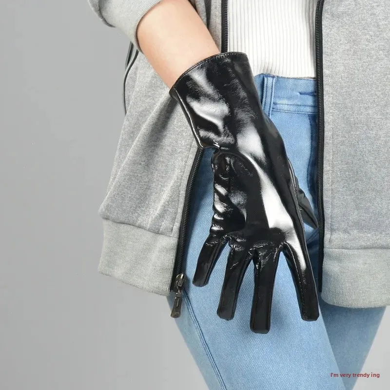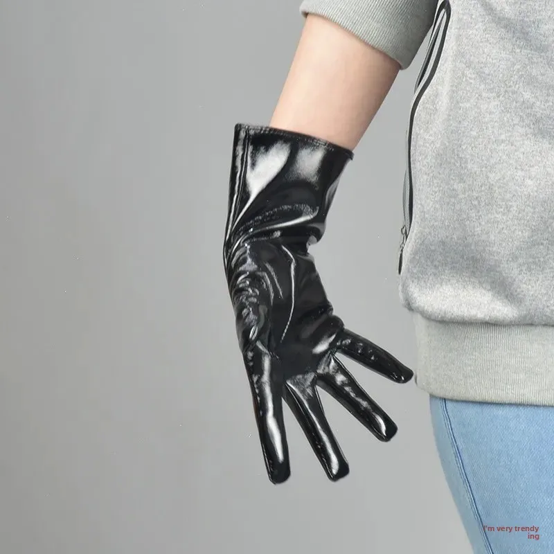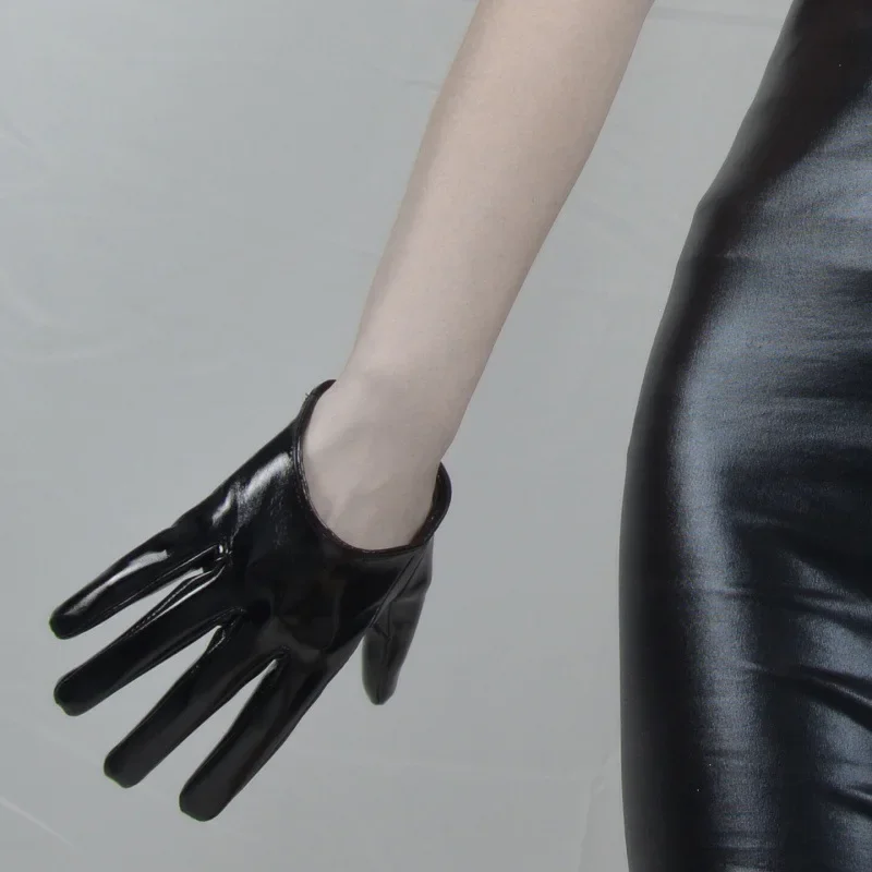 • Patent Leather Material : Crafted from high-quality patent leather, these gloves offer a shiny, sophisticated finish.
