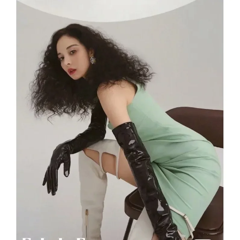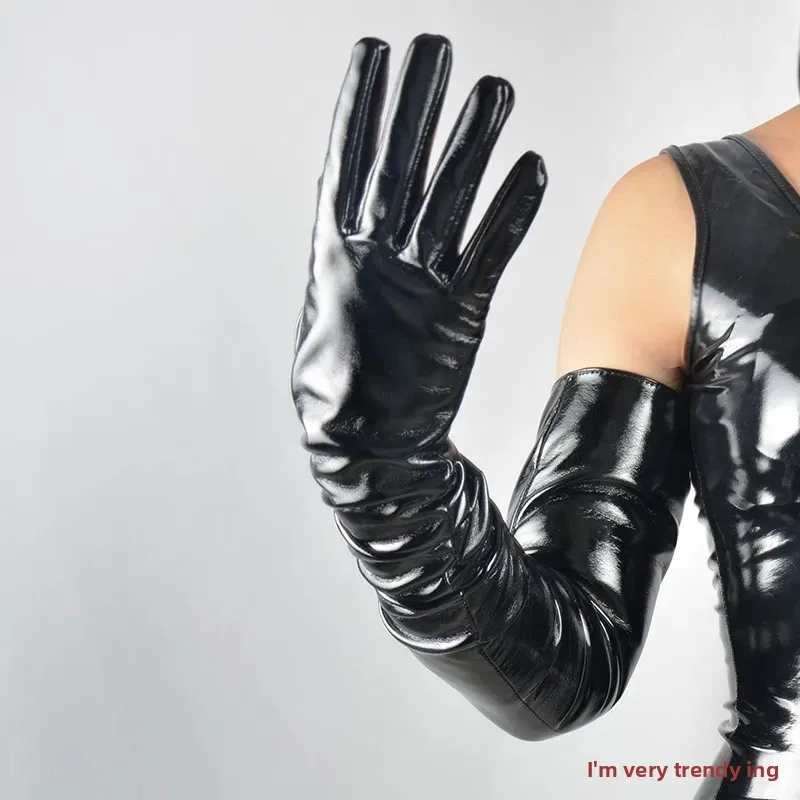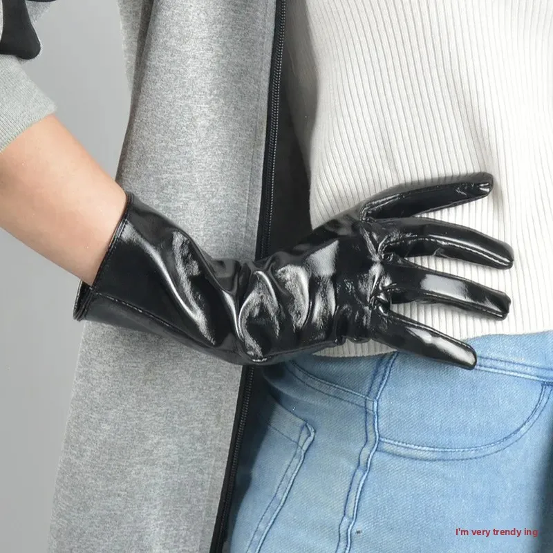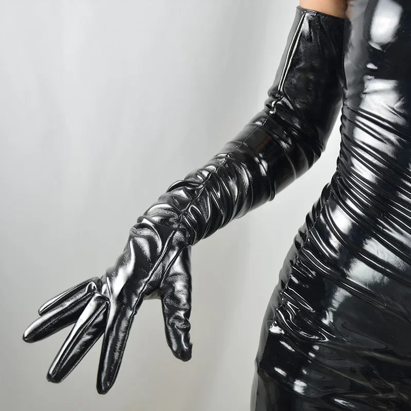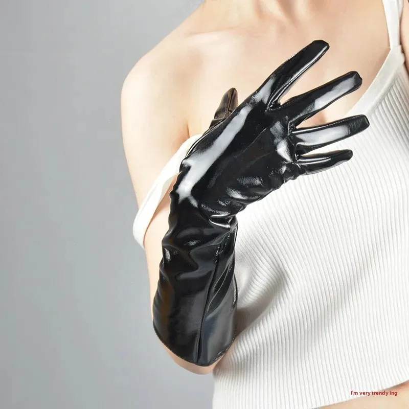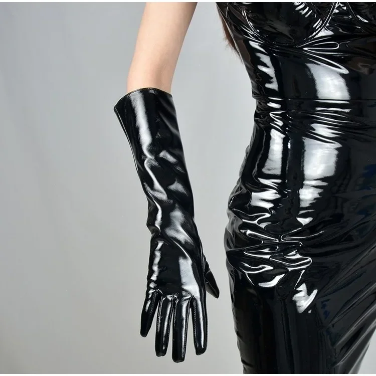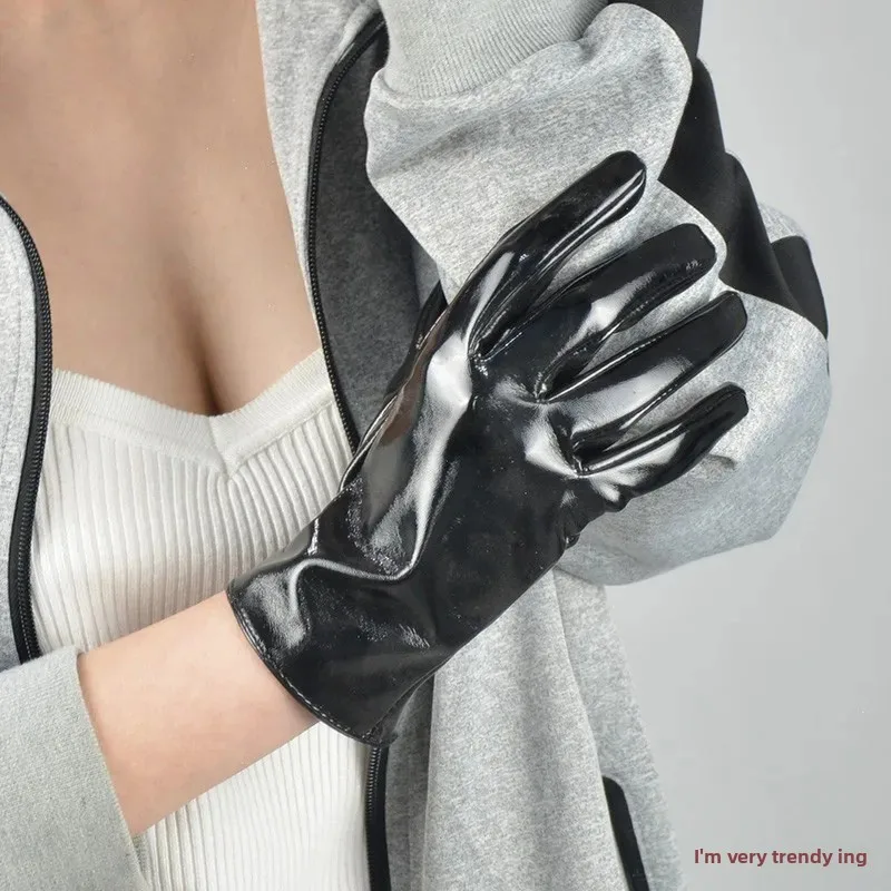 • Patent Leather Material : Crafted from high-quality patent leather, these gloves offer a shiny, sophisticated finish.